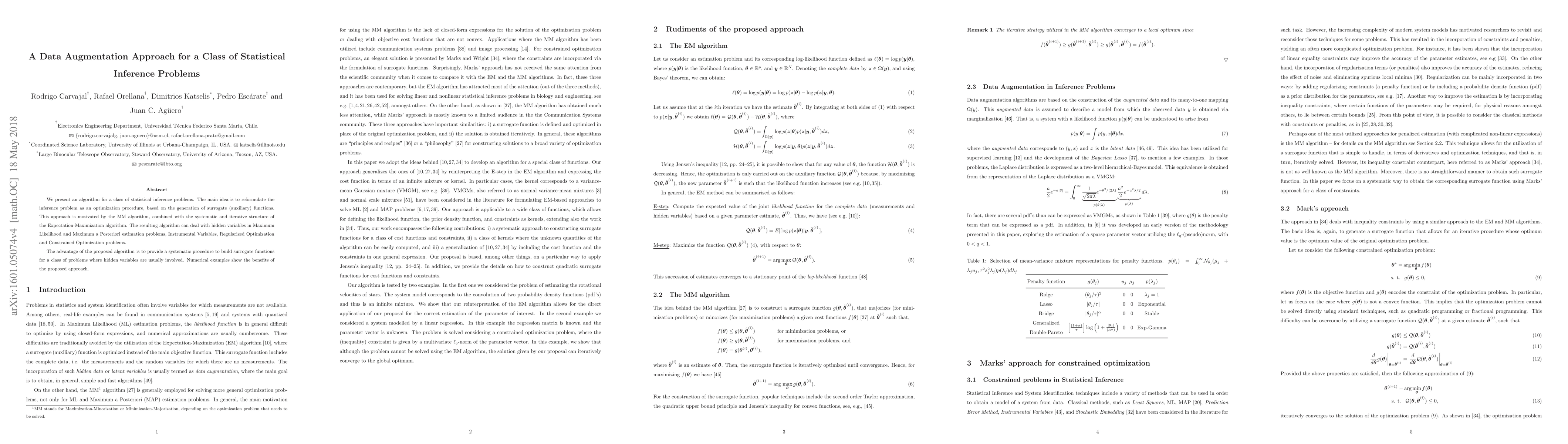 We present an algorithm for a class of statistical inference problems. The main idea is to reformulate the inference problem as an optimization procedure, based on the generation of surrogate (auxiliary) functions. This approach is motivated by the MM algorithm, combined with the systematic and iterative structure of the Expectation-Maximization algorithm. The resulting algorithm can deal with hidden variables in Maximum Likelihood and Maximum a Posteriori estimation problems, Instrumental Variables, Regularized Optimization and Constrained Optimization problems. The advantage of the proposed algorithm is to provide a systematic procedure to build surrogate functions for a class of problems where hidden variables are usually involved. Numerical examples show the benefits of the proposed approach.