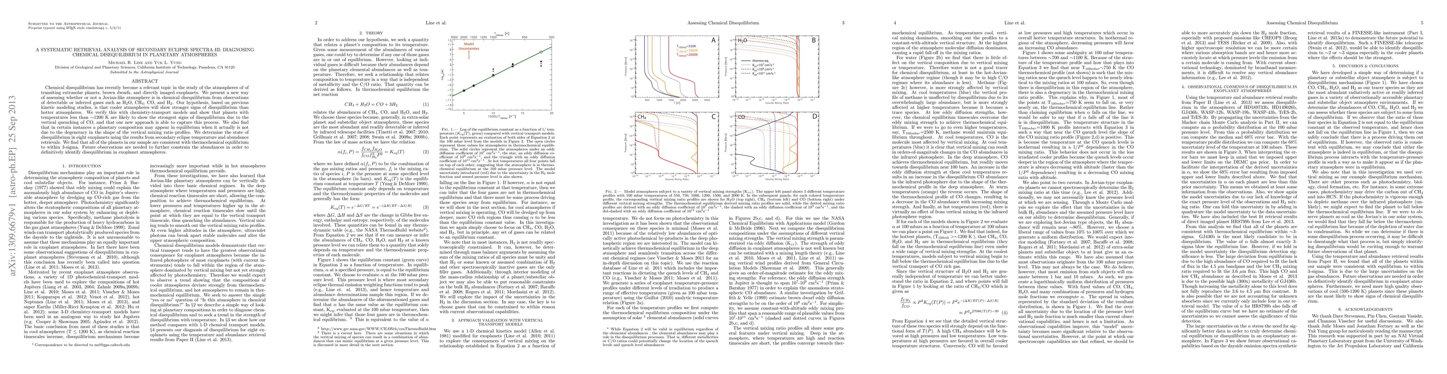This paper proposes a new method to assess chemical disequilibrium in the atmospheres of exoplanets using secondary eclipse spectra, finding that cooler atmospheres below 1200 K likely show stronger disequilibrium signs due to CO quenching. Despite this, the study concludes that current observations do not provide definitive evidence of disequilibrium in eight sampled exoplanets, suggesting future observations are needed for more precise identification.
