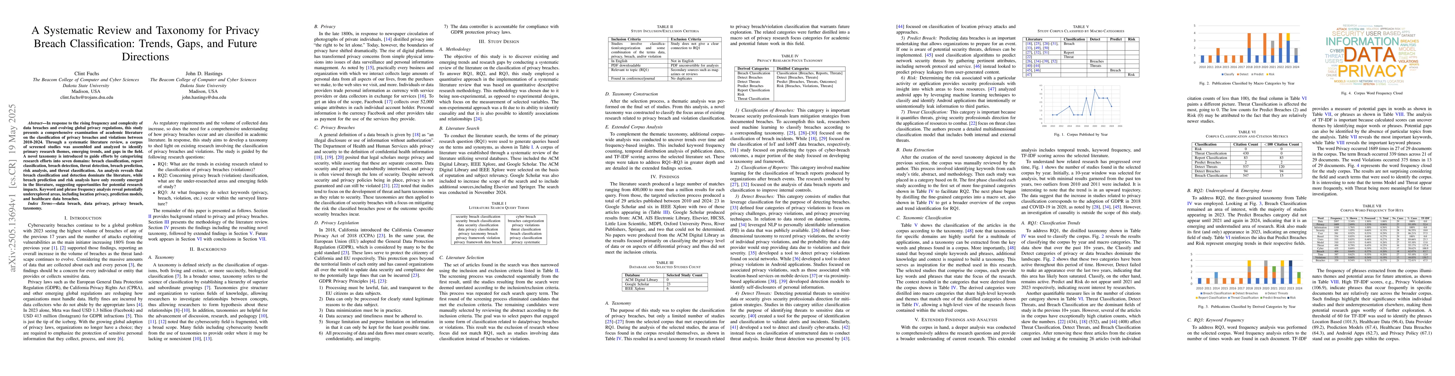 This work differentiates itself by providing a comprehensive taxonomy for privacy breach classification, highlighting emerging research trends, and identifying underexplored areas in the field.