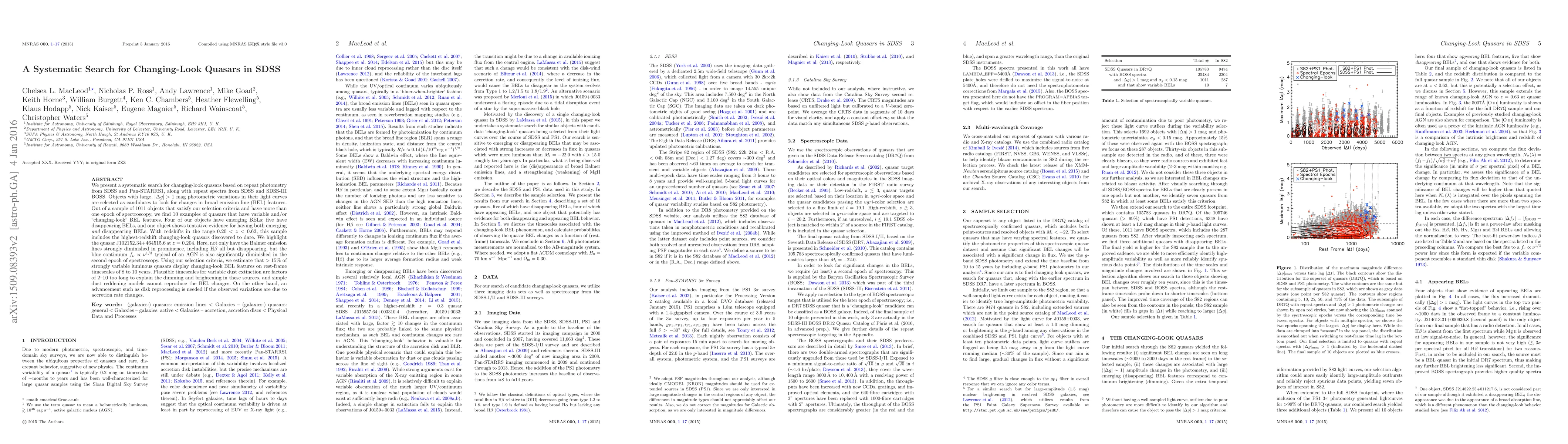 We present a systematic search for changing-look quasars based on repeat photometry from SDSS and Pan-STARRS1, along with repeat spectra from SDSS and SDSS-III BOSS. Objects with large, |\Delta g|>1 mag photometric variations in their light curves are selected as candidates to look for changes in broad emission line (BEL) features. Out of a sample of 1011 objects that satisfy our selection criteria and have more than one epoch of spectroscopy, we find 10 examples of quasars that have variable and/or "changing-look" BEL features. Four of our objects have emerging BELs; five have disappearing BELs, and one object shows tentative evidence for having both emerging and disappearing BELs. With redshifts in the range 0.20 < z < 0.63, this sample includes the highest-redshift changing-look quasars discovered to date. We highlight the quasar J102152.34+464515.6 at z = 0.204. Here, not only have the Balmer emission lines strongly diminished in prominence, including H$\beta$ all but disappearing, but the blue continuum $f_{\nu} \propto \nu^{1/3}$ typical of an AGN is also significantly diminished in the second epoch of spectroscopy. Using our selection criteria, we estimate that >15% of strongly variable luminous quasars display changing-look BEL features on rest-frame timescales of 8 to 10 years. Plausible timescales for variable dust extinction are factors of 2-10 too long to explain the dimming and brightening in these sources, and simple dust reddening models cannot reproduce the BEL changes. On the other hand, an advancement such as disk reprocessing is needed if the observed variations are due to accretion rate changes.