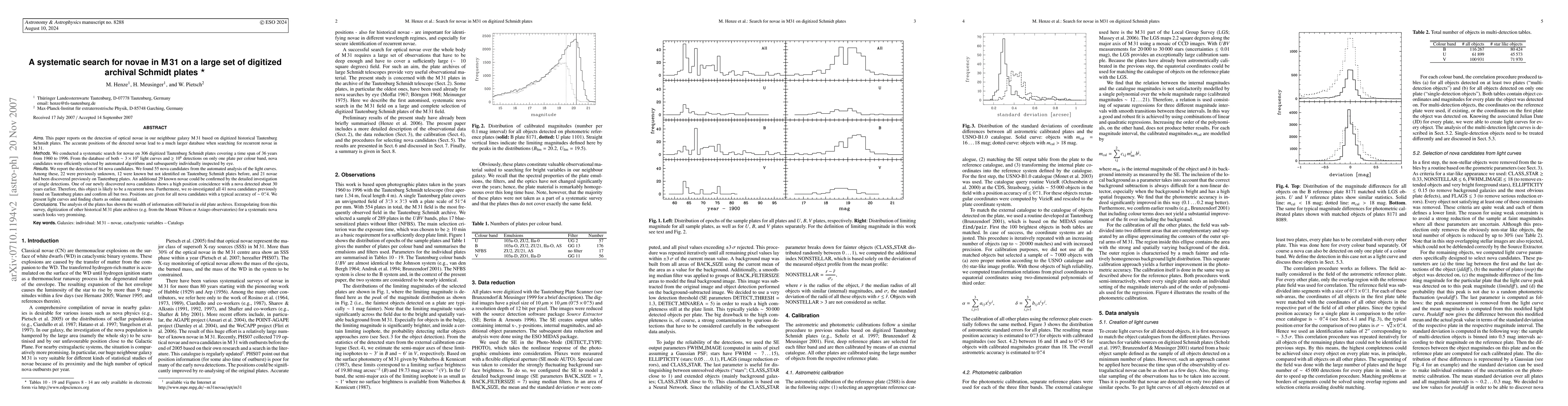 This study systematically searched 306 digitized Tautenburg Schmidt plates from 1960 to 1996, detecting 84 nova candidates in M31. Of these, 22 were previously unknown, and one shows potential recurrence. The methodology involved automated algorithms and visual inspection, highlighting the value of historical plate archives for nova research.