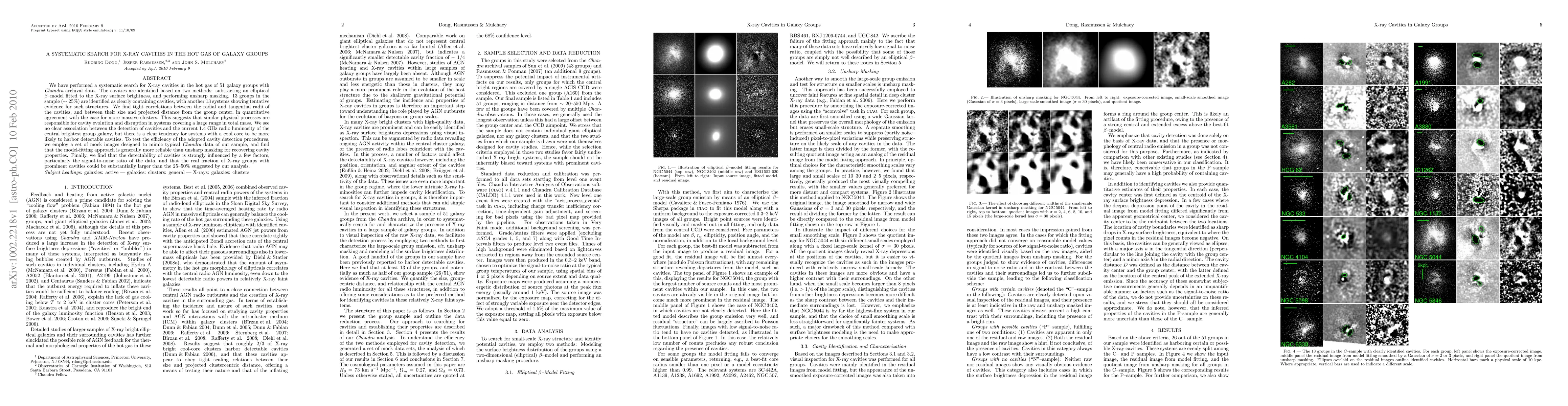 A systematic search for X-ray cavities in galaxy groups identified 13 systems with clear cavities and 13 with tentative evidence, suggesting a correlation between cavity size and system mass, and a possible link to cool core galaxies.
