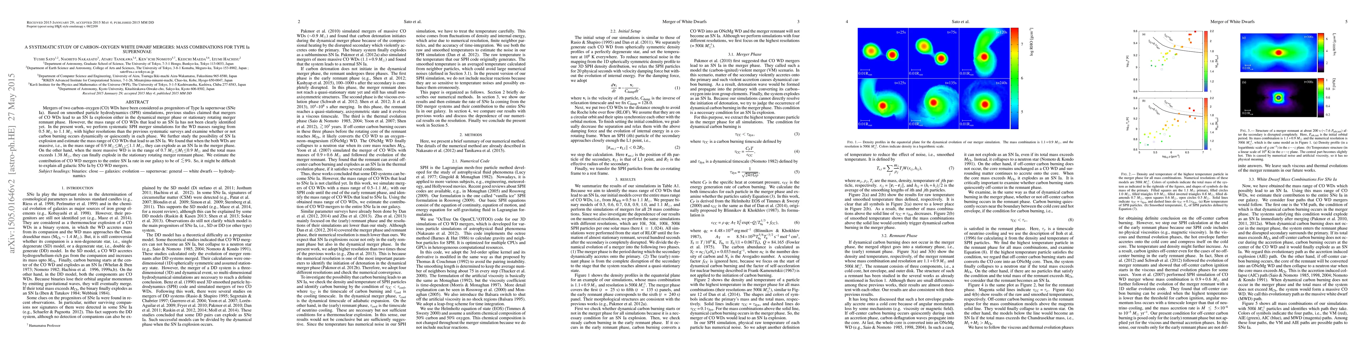 Carbon-oxygen white dwarf mergers may contribute to 9% of Type Ia supernovae, occurring in two phases: dynamical merger or stationary rotating merger remnant phase, depending on mass ranges.