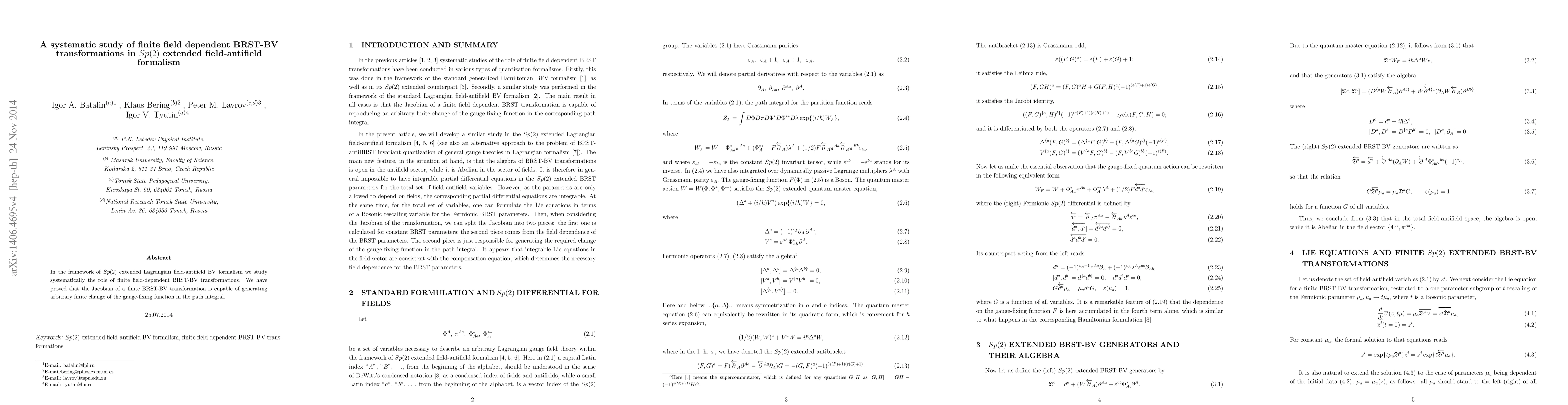 Summary: This paper systematically investigates finite field-dependent BRST-BV transformations within the $Sp(2)$ extended field-antifield formalism, proving that the Jacobian of such transformations can generate any finite change in the gauge-fixing function in the path integral.