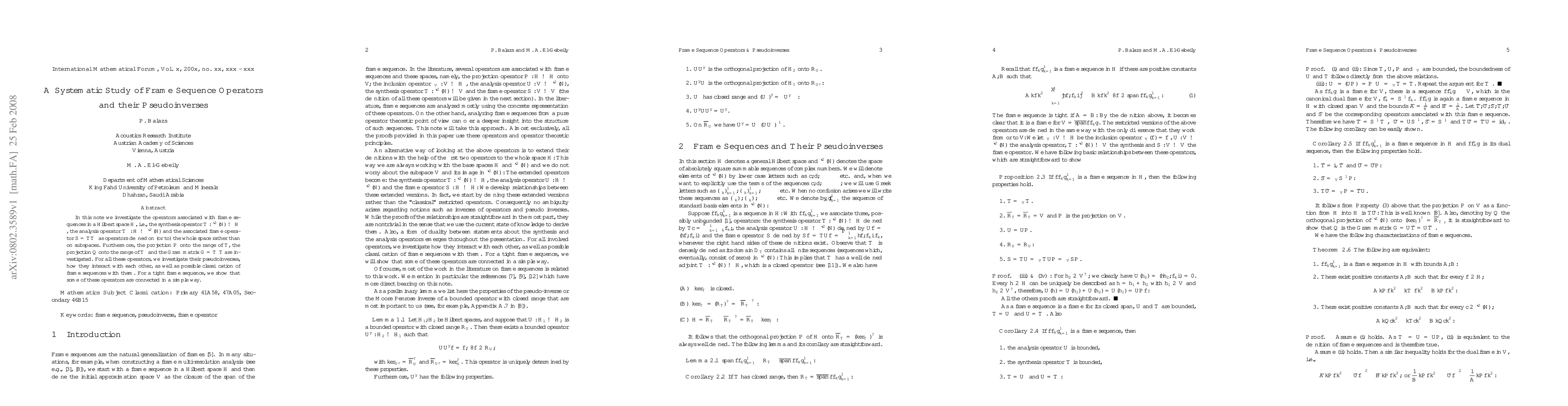 This study investigates frame sequence operators in Hilbert space, focusing on their pseudoinverses, interactions, and implications for tight frame sequences, providing a deeper understanding of frame sequences in signal processing.
