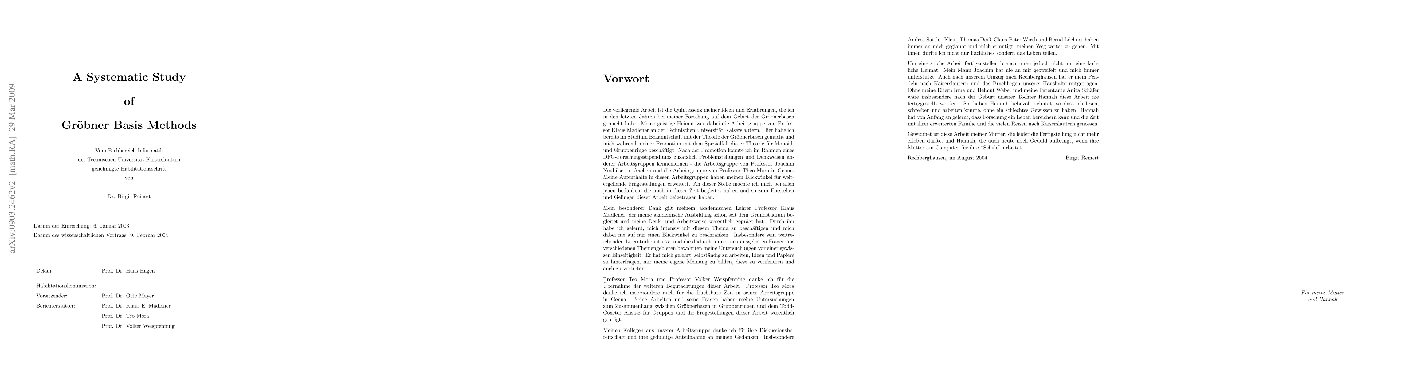 This habilitation (German variant of a PhD on top of a PhD) thesis presents the quintessence of the ideas and experiences with Groebner Bases of Birgit Reinert. She died unexpectedly without providing an abstract. As arXiv requires an abstract, let us quote from the table of contents: History of Groebner Bases. The two definitions of Groebner Bases. Generalizations. Groebner Bases in Function Rings -- A Guide for Introducing Relations to Algebraic Structures. Applications of Groebner Bases to Function Rings. Groebner Bases in Polynomial Rings. Reduction Rings. Quotients of Reduction Rings. Sums of Reduction Rings. Modules over Reduction Rings. Polynomial Rings over Reduction Rings. Function Rings: Right Ideals and Right Standard Representations. Function Rings over Fields. Function Rings over Reduction Rings. Function Rings over the Integers. Right F-Modules. Ideals and Standard Representations. Two-sided Modules. Applications of Groebner Bases: Natural Applications. Quotient Rings. Elimination Theory. Polynomial Mappings. Systems of One-sided Equations in Function Rings over the Integers.