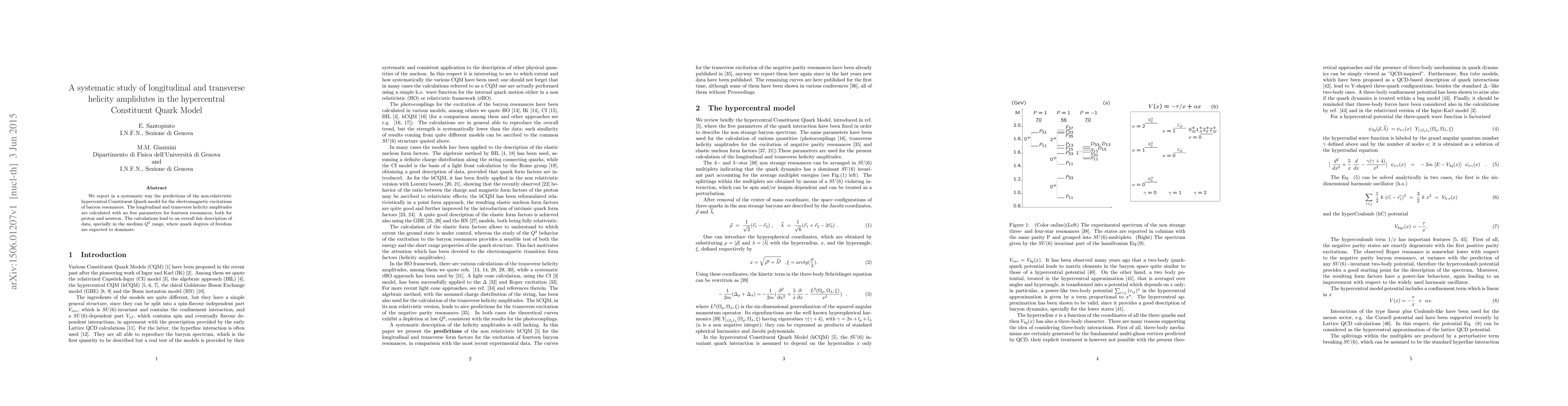 This paper systematically evaluates the longitudinal and transverse helicity amplitudes of baryon resonances using the non-relativistic hypercentral Constituent Quark Model, achieving a fair description of experimental data, particularly in the medium $Q^2$ range. The model's predictions are derived without free parameters for fourteen resonances.