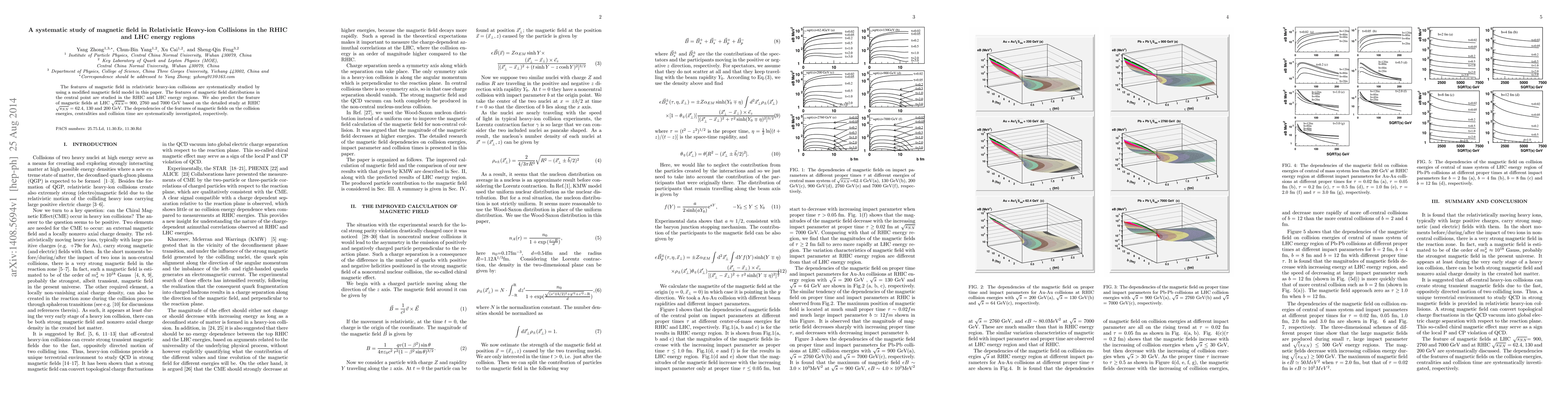 The features of magnetic field in relativistic heavy-ion collisions are systematically studied by using a modified magnetic field model in this paper. The features of magnetic field distributions in the central point are studied in the RHIC and LHC energy regions. We also predict the feature of magnetic fields at LHC $\sqrt{s_{NN}}$= 900, 2760 and 7000 GeV based on the detailed study at RHIC $\sqrt{s_{NN}}$ = 62.4, 130 and 200 GeV. The dependencies of the features of magnetic fields on the collision energies, centralities and collision time are systematically investigated, respectively.