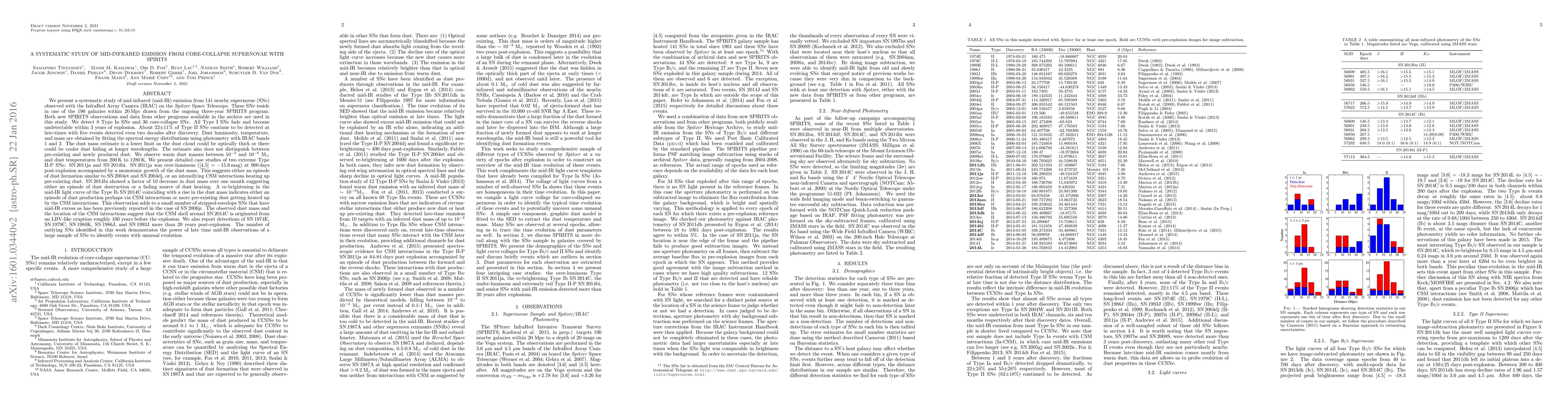 This study analyzes mid-infrared emission from 141 nearby supernovae using Spitzer data, detecting 8 Type Ia and 36 core-collapse SNe, and finding evidence of dust formation and destruction in some cases.