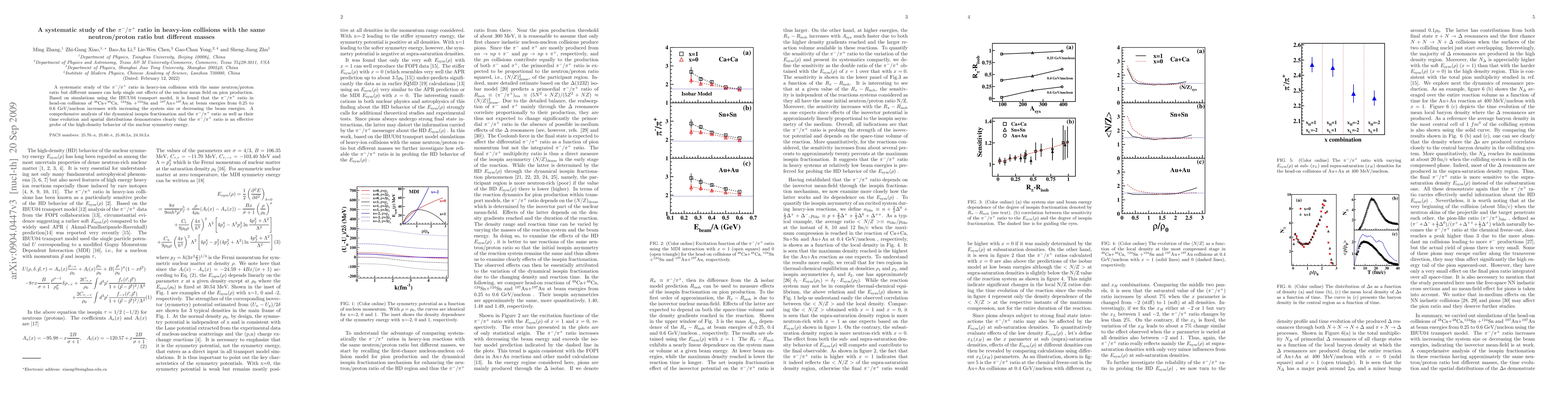 A systematic study of the $\pi^-/\pi^+$ ratio in heavy-ion collisions with the same neutron/proton ratio but different masses can help single out effects of the nuclear mean field on pion production. Based on simulations using the IBUU04 transport model, it is found that the $\pi^-$ / $\pi^+$ ratio in head-on collisions of $^{48}$Ca+$^{48}$Ca, $^{124}$Sn +$^{124}$Sn and $^{197}$Au+$^{197}$Au at beam energies from 0.25 to 0.6 \agev increases with increasing the system size or decreasing the beam energies. A comprehensive analysis of the dynamical isospin fractionation and the \rpi ratio as well as their time evolution and spatial distributions demonstrates clearly that the \rpi ratio is an effective probe of the high-density behavior of the nuclear symmetry energy.