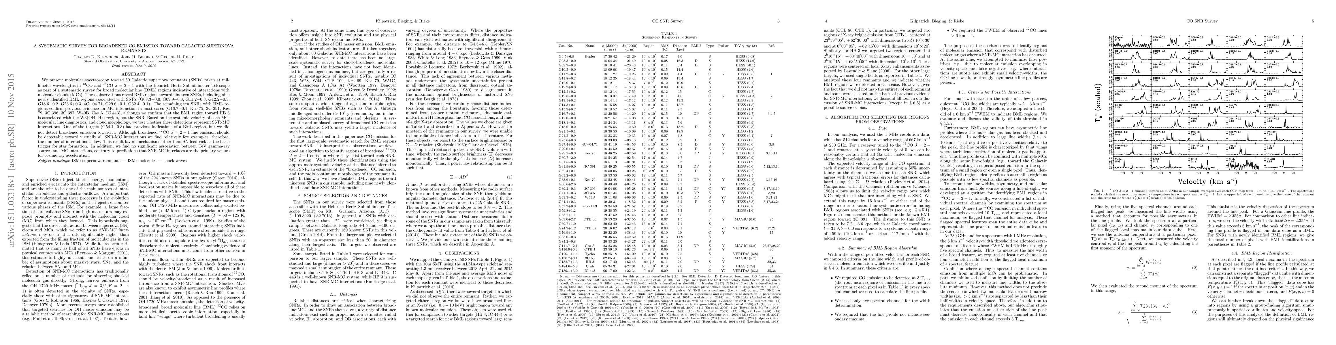 We present molecular spectroscopy toward 50 Galactic supernova remnants (SNRs) taken at millimeter wavelengths in 12CO and 13CO J=2-1 with the Heinrich Hertz Submillimeter Telescope as part of a systematic survey for broad molecular line (BML) regions indicative of interactions with molecular clouds (MCs). These observations reveal BML regions toward nineteen SNRs, including nine newly identified BML regions associated with SNRs (G08.3-0.0, G09.9-0.8, G11.2-0.3, G12.2+0.3, G18.6-0.2, G23.6+0.3, 4C-04.71, G29.6+0.1, G32.4+0.1). The remaining ten SNRs with BML regions confirm previous evidence for MC interaction in most cases (G16.7+0.1, Kes 75, 3C 391, Kes 79, 3C 396, 3C 397, W49B, Cas A, IC 443), although we confirm that the BML region toward HB 3 is associated with the W3(OH) HII region, not the SNR. Based on the systemic velocity of each MC, molecular line diagnostics, and cloud morphology, we test whether these detections represent SNR-MC interactions. One of the targets (G54.1+0.3) had previous indications of a BML region, but we did not detect broadened emission toward it. Although broadened 12CO J=2-1 line emission should be detectable toward virtually all SNR-MC interactions we find relatively few examples; therefore, the number of interactions is low. This result favors mechanisms other than SN feedback as the basic trigger for star formation. In addition, we find no significant association between TeV gamma-ray sources and MC interactions, contrary to predictions that SNR-MC interfaces are the primary venues for cosmic ray acceleration.