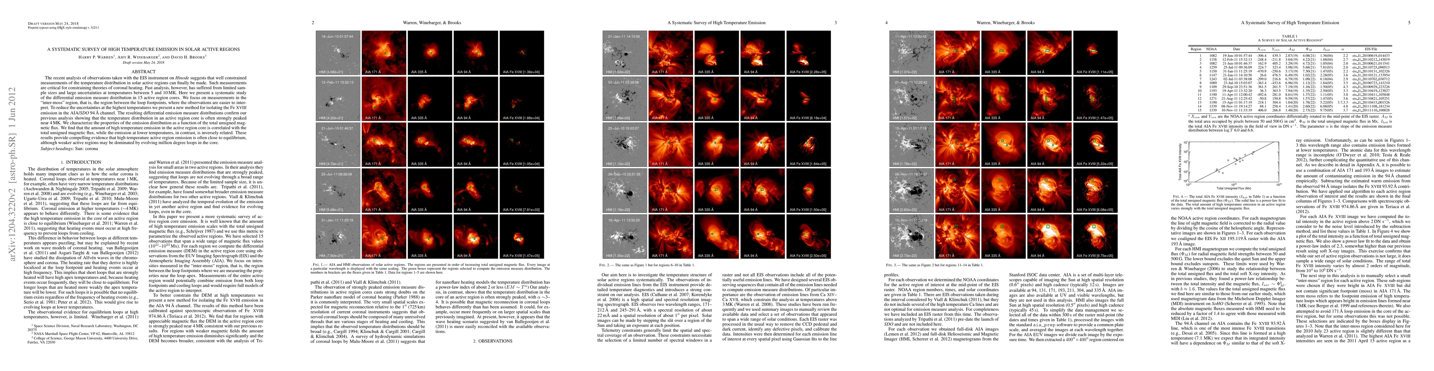 This paper presents a systematic study using Hinode's EIS instrument to measure temperature distributions in solar active regions, focusing on the "inter-moss" region. The study introduces a new method to isolate Fe XVIII emission, revealing that high temperature emission correlates with total magnetic flux, suggesting equilibrium conditions in active regions.