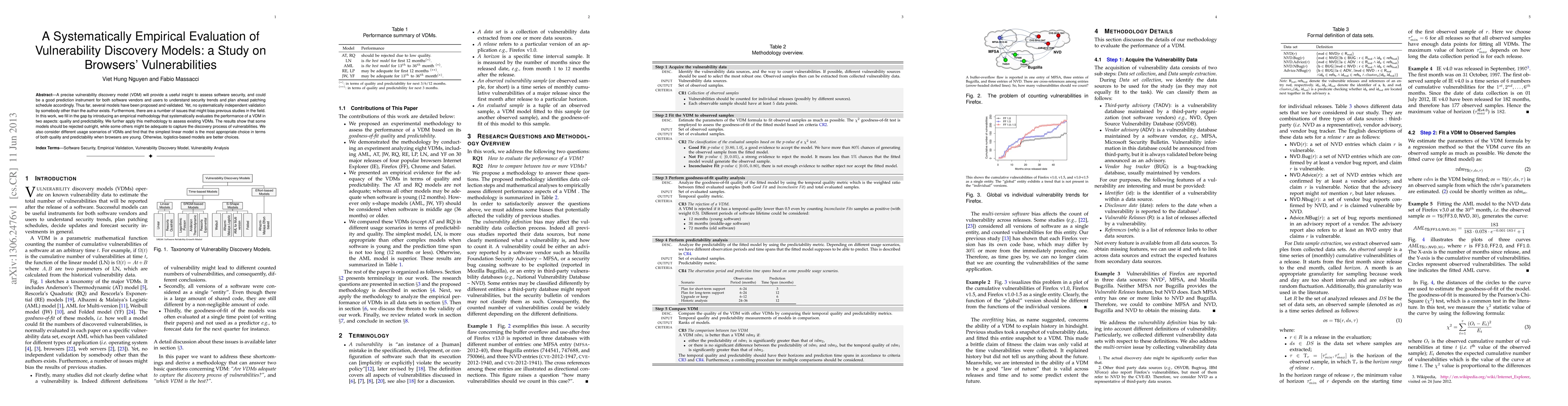 This paper systematically evaluates vulnerability discovery models (VDMs) for browser vulnerabilities, assessing their quality and predictability. The study finds that while some models are inadequate, simpler linear models are best for young browsers, while logistics-based models are preferable otherwise.