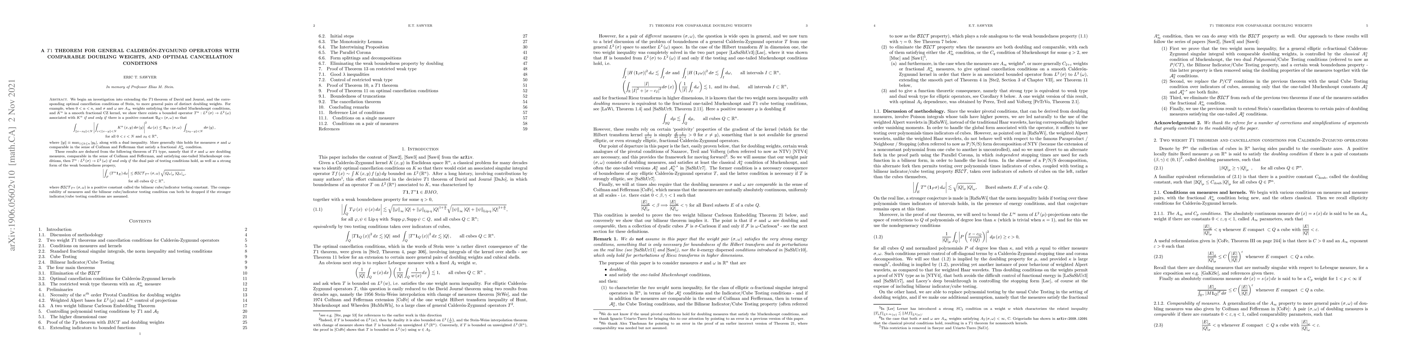 We begin an investigation into extending the T1 theorem of David and Journ\'e, and the corresponding cancellation conditions of Stein, to more general pairs of distinct doubling weights. For example, assuming the measures satisfy a fractional A infinity condition and are comparable in the sense of Coifman and Fefferman, we characterize the two weight norm inequality for a strongly elliptic fractional Calder\'on-Zygmund singular integral, in terms of the one-tailed fractional Muckenhoupt conditions, and the usual cube testing conditions. We then apply this result to give a version, in the setting of two comparable fractional A infinity weights, of Stein's characterization of cancellation conditions on a kernel K in order that there exists a bounded operator T that is associated with K. More generally we prove a T1 theorem involving a bilinear indicator/cube testing inequality in place of the weak boundedness property of David and Journe\'e - where we must test over all bounded functions instead of just Holder continuous functions. We use a proof strategy based on an adaptation of the `pivotal' argument of Nazarov, Treil and Volberg to the weighted Alpert wavelets of Rahm, Sawyer and Wick using a Parallel Corona decomposition of Lacey, Sawyer, Shen and Uriarte-Tuero.
