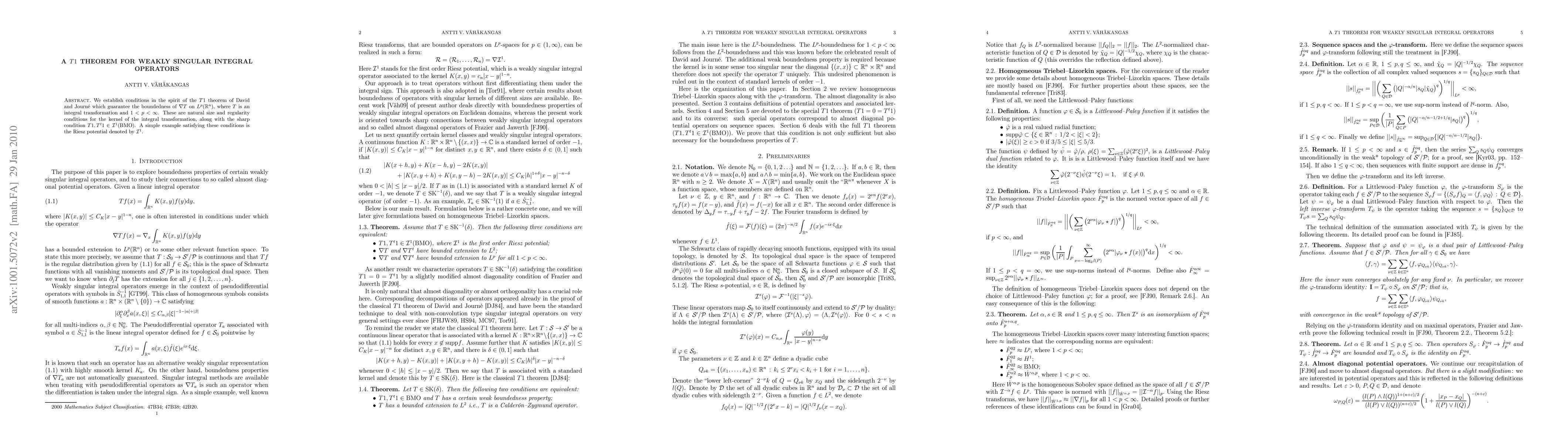 This paper establishes conditions ensuring the boundedness of the gradient of a weakly singular integral operator on L^p spaces, inspired by the T1 theorem. The conditions include natural size and regularity for the kernel, along with the sharp T1 condition, exemplified by the Riesz potential.
