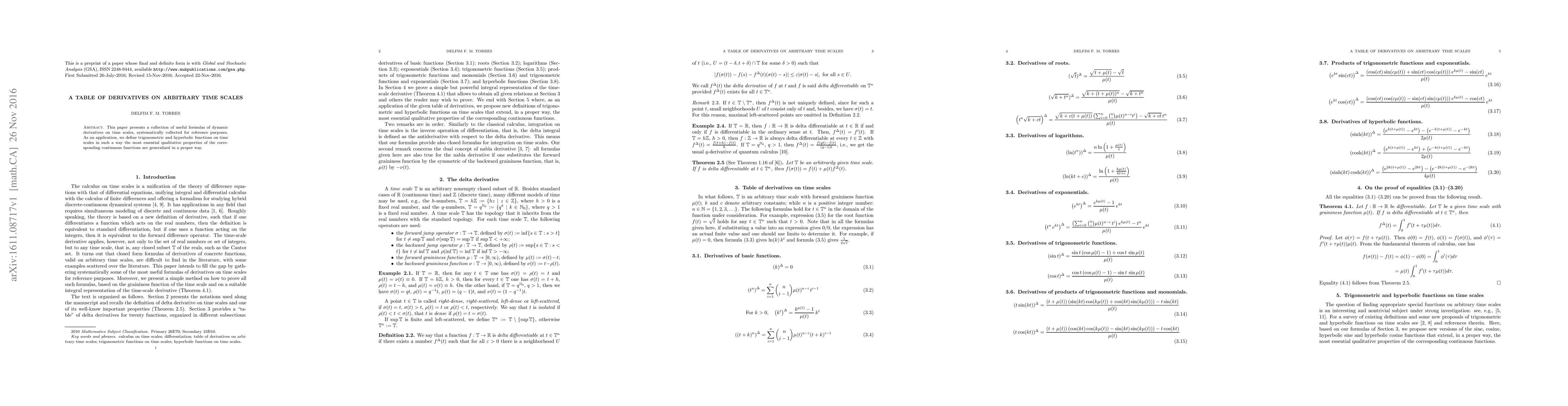 This paper presents a collection of useful formulas of dynamic derivatives on time scales, systematically collected for reference purposes. As an application, we define trigonometric and hyperbolic functions on time scales in such a way the most essential qualitative properties of the corresponding continuous functions are generalized in a proper way.