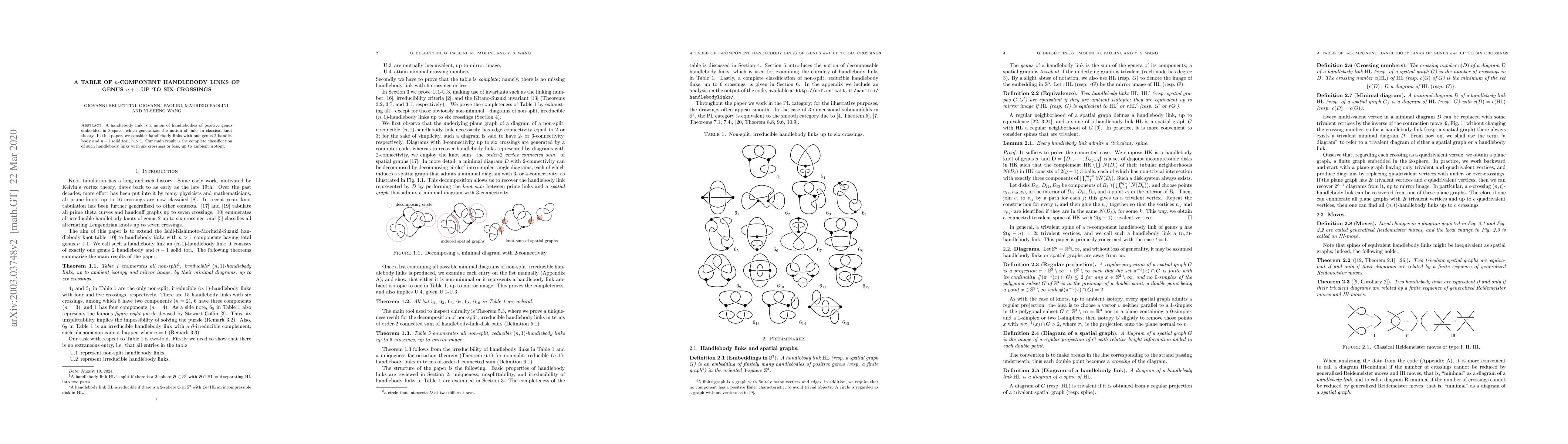 A handlebody link is a union of handlebodies of positive genus embedded in 3-space, which generalizes the notion of links in classical knot theory. In this paper, we consider handlebody links with one genus 2 handlebody and $n-1$ solid tori, $n>1$. Our main result is the complete classification of such handlebody links with six crossings or less, up to ambient isotopy.