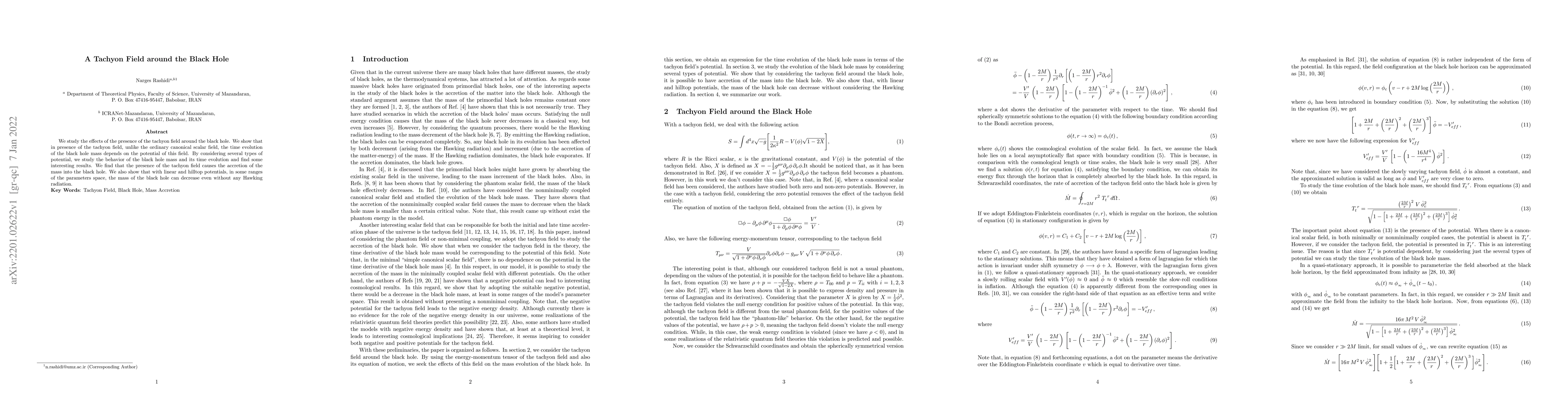 Summary: This paper investigates the influence of a tachyon field on black hole mass dynamics, revealing that its presence alters time evolution compared to ordinary scalar fields. It finds that the tachyon field can cause mass accretion and, under certain potentials, can even lead to a decrease in black hole mass without Hawking radiation.