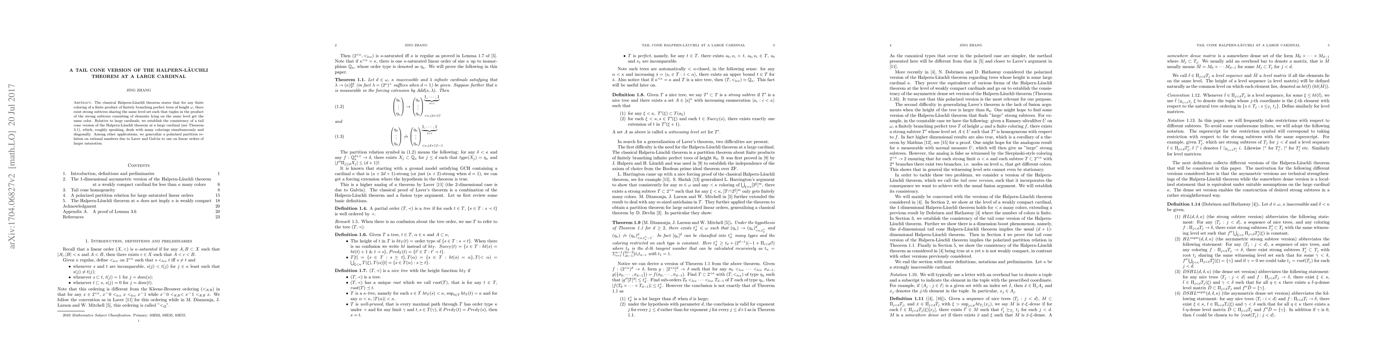 Researchers establish a consistency result for a tail cone version of the Halpern-L"auchli theorem at large cardinal, showing that many colorings can be simultaneously matched with the same level set properties.