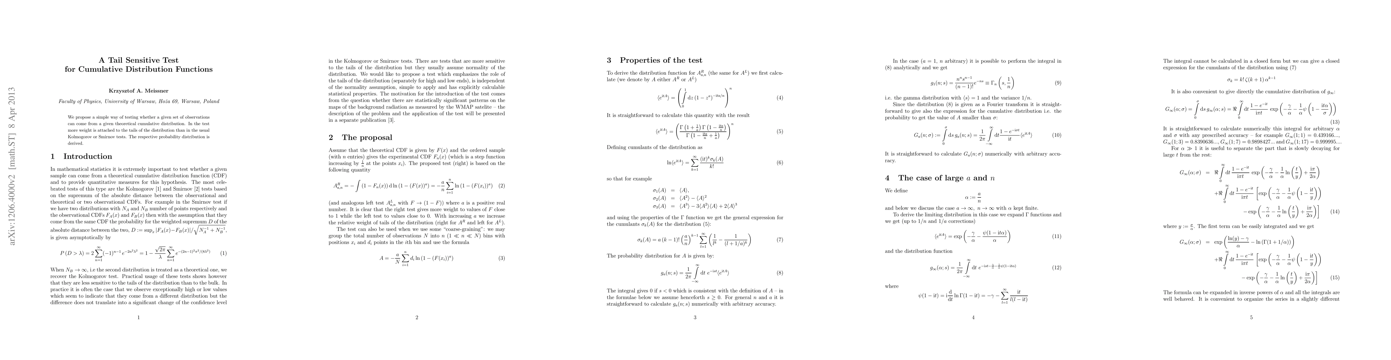 Researchers propose a new statistical test that gives more weight to the tails of a distribution, allowing for more accurate detection of whether observations match a theoretical cumulative distribution. The test provides a simple way to evaluate distributions without needing complex computational methods or large datasets.