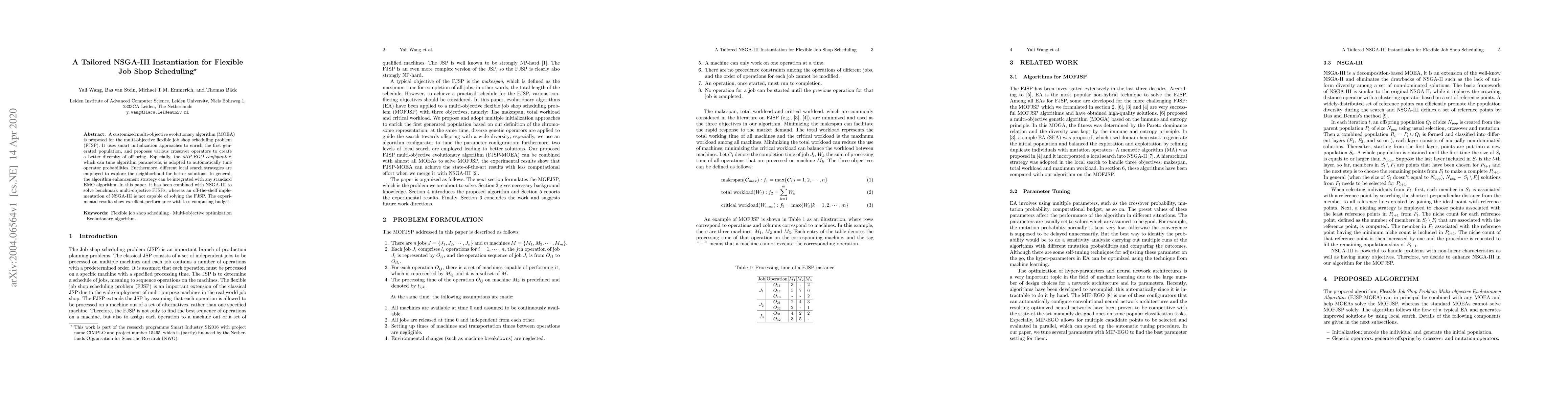 A customized multi-objective algorithm is proposed to solve flexible job shop scheduling problems with improved performance using smart initialization, crossover operators, and local search strategies. The algorithm shows excellent results with less computing budget.