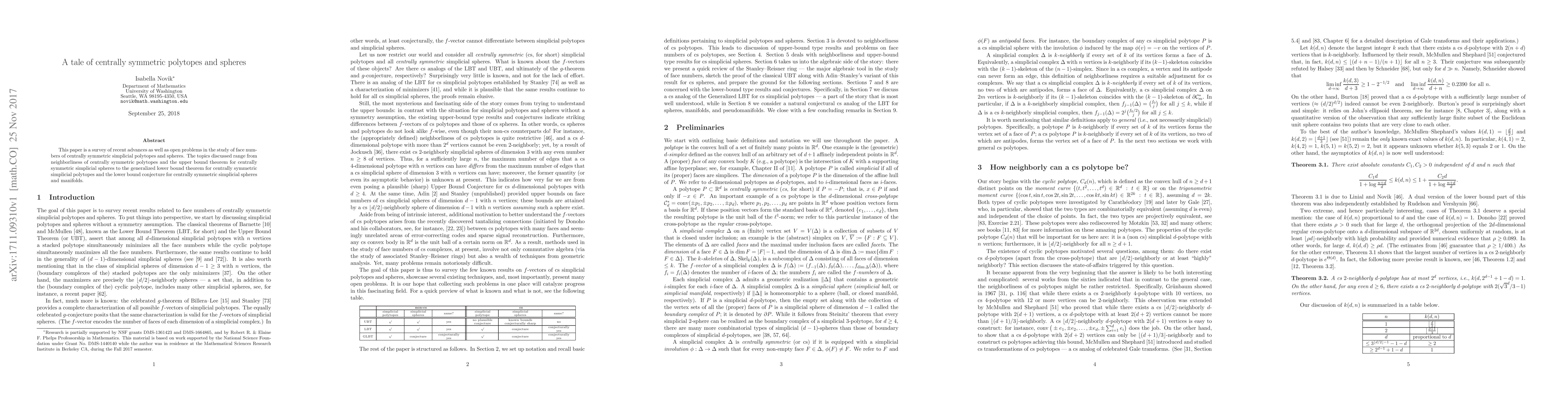 This paper surveys recent developments and open questions in the study of face numbers for centrally symmetric simplicial polytopes and spheres, including neighborliness, upper and lower bound theorems, and conjectures. It highlights significant advances and challenges in this mathematical area.