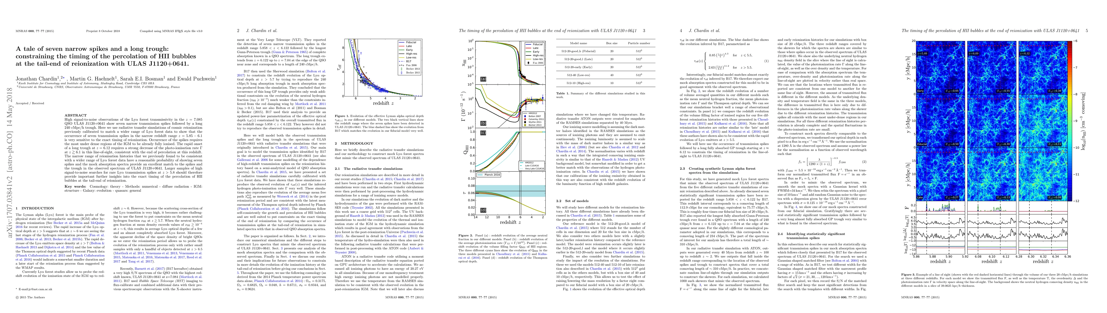 This paper analyzes high-signal to noise observations of the Ly$\alpha$ forest in the QSO ULAS J1120+0641 at z = 7.085, revealing seven narrow spikes followed by a long trough. It suggests that the timing of reionization, specifically the percolation of HII bubbles, is crucial to the occurrence of these spikes and the subsequent trough, indicating the end of reionization around z = 6.1.