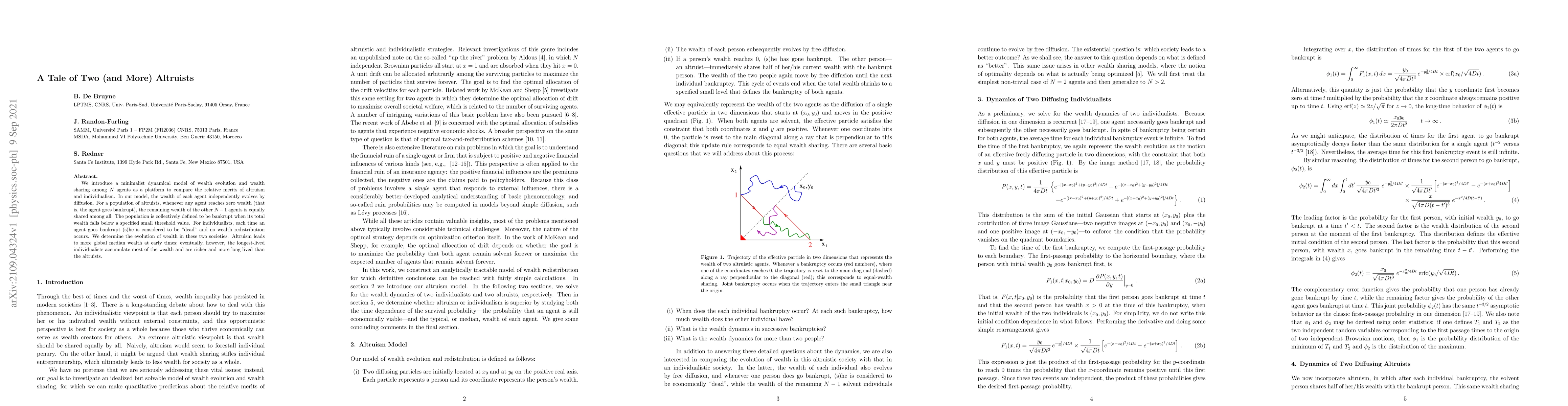 A research paper models two types of societies: altruistic and individualistic, showing that long-lived individualists accumulate more wealth over time, while altruism initially increases global median wealth.
