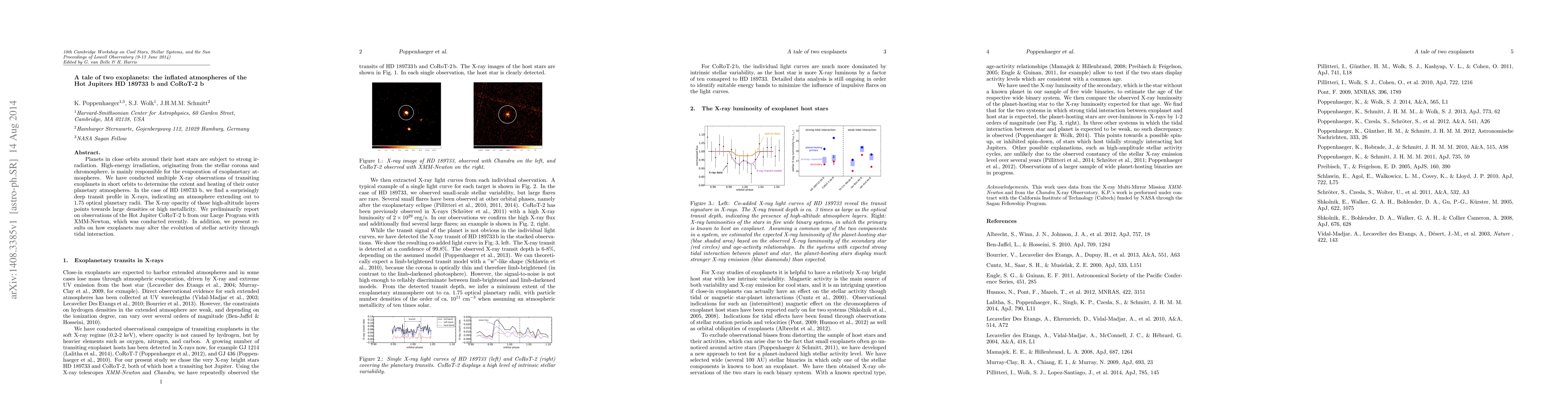 Planets in close orbits around their host stars are subject to strong irradiation. High-energy irradiation, originating from the stellar corona and chromosphere, is mainly responsible for the evaporation of exoplanetary atmospheres. We have conducted multiple X-ray observations of transiting exoplanets in short orbits to determine the extent and heating of their outer planetary atmospheres. In the case of HD 189733 b, we find a surprisingly deep transit profile in X-rays, indicating an atmosphere extending out to 1.75 optical planetary radii. The X-ray opacity of those high-altitude layers points towards large densities or high metallicity. We preliminarily report on observations of the Hot Jupiter CoRoT-2 b from our Large Program with XMM-Newton, which was conducted recently. In addition, we present results on how exoplanets may alter the evolution of stellar activity through tidal interaction.