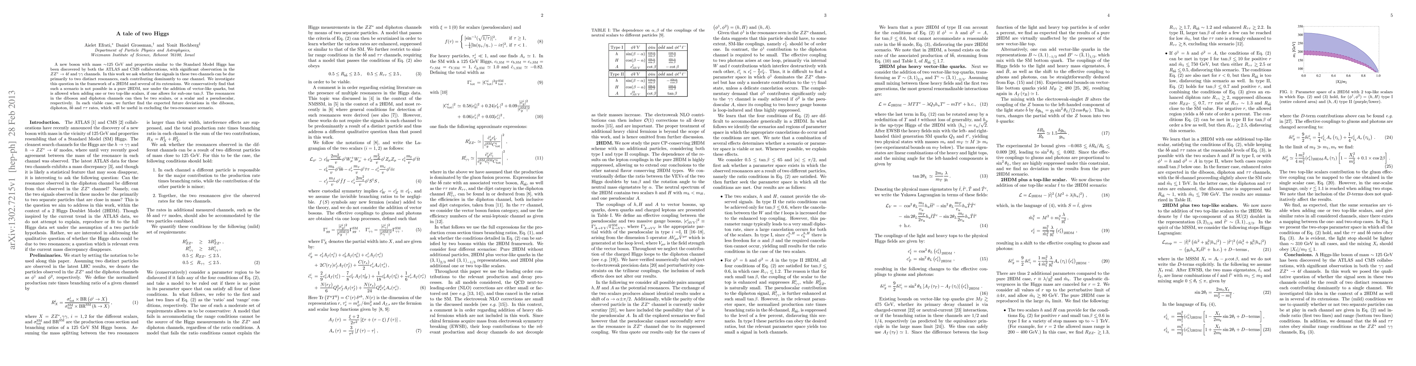 A new boson with mass ~125 GeV and properties similar to the Standard Model Higgs has been discovered by both the ATLAS and CMS collaborations, with significant observation in the ZZ* to 4 leptons and the diphoton channels. In this work we ask whether the signals in these two channels can be due primarily to two distinct resonances, each contributing dominantly to one channel. We investigate this question in the framework of a 2HDM and several of its extensions. We conservatively find that such a scenario is not possible in a pure 2HDM, nor under the addition of vector-like quarks, but is allowed when adding one or two top-like scalars, if one allows for sub-one tan\beta. The resonances in the diboson and diphoton channels can then be two scalars, or a scalar and a pseudoscalar, respectively. In each viable case, we further find the expected future deviations in the diboson, diphoton, b \bar b and tau tau rates, which will be useful in excluding the two-resonance scenario.