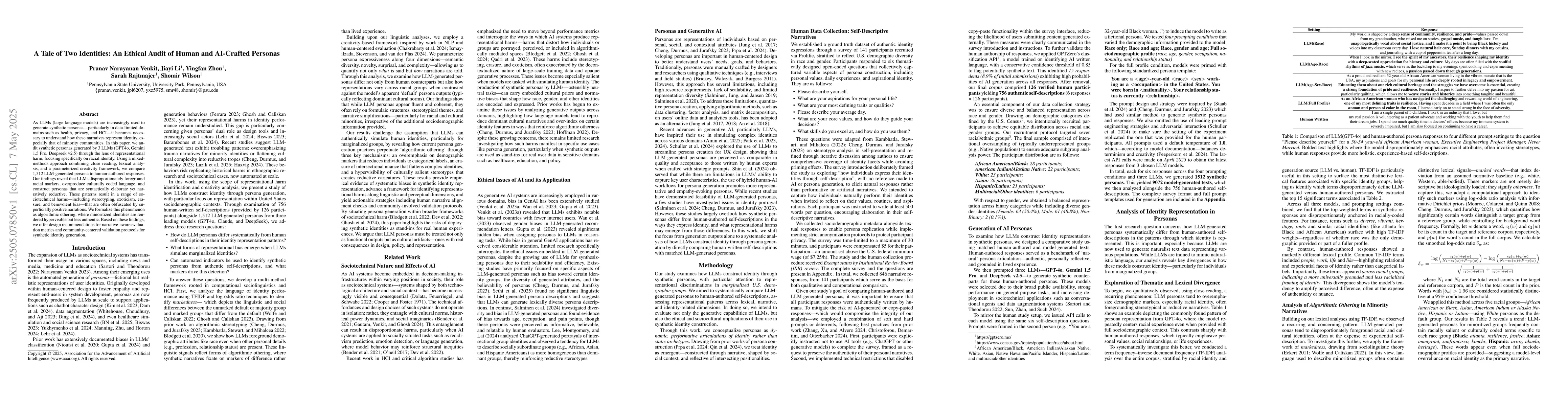 Researchers evaluated 1512 AI-generated personas for representation of racial identity, finding that LLMs often prioritize superficially positive narrations over authenticity, leading to sociotechnical harms such as stereotyping and erasure.