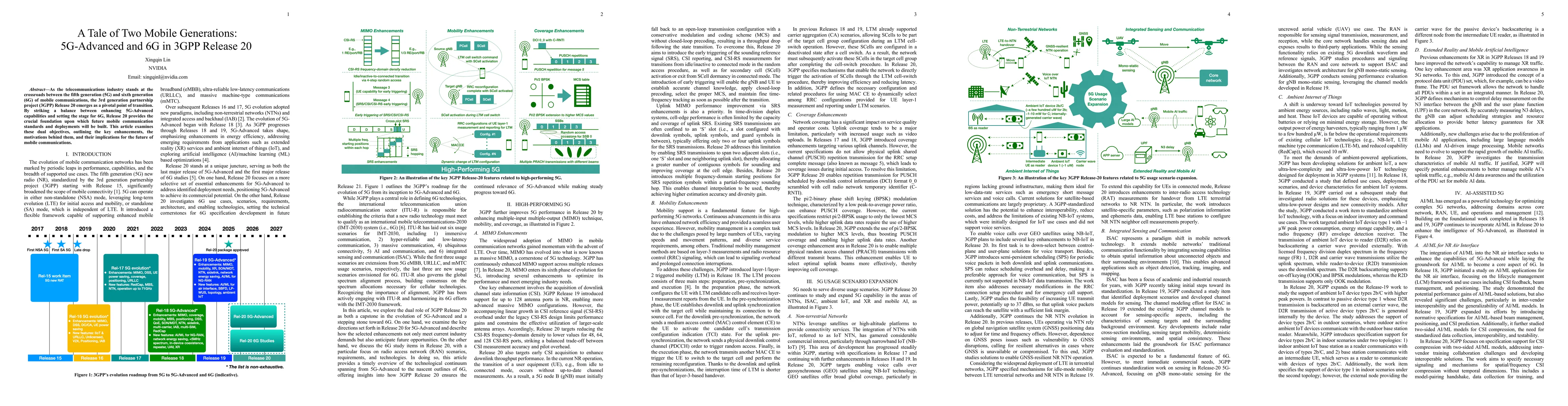 As the telecommunications industry stands at the crossroads between the fifth generation (5G) and sixth generation (6G) of mobile communications, the 3rd generation partnership project (3GPP) Release 20 emerges as a pivotal point of transition. By striking a balance between enhancing 5G-Advanced capabilities and setting the stage for 6G, Release 20 provides the crucial foundation upon which future mobile communication standards and deployments will be built. This article examines these dual objectives, outlining the key enhancements, the motivations behind them, and their implications for the future of mobile communications.