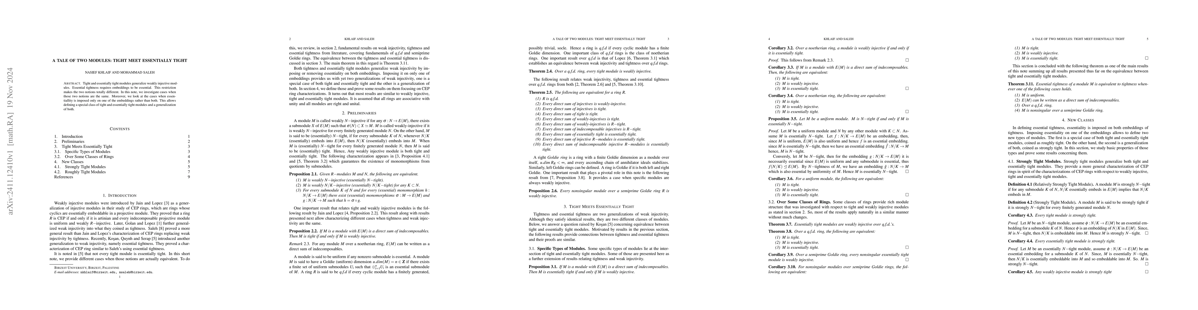 This paper explores the differences between tight and essentially tight modules, noting that essential tightness imposes stricter embedding conditions. It investigates scenarios where these notions converge and introduces a special class of modules that generalizes both tight and essentially tight modules.