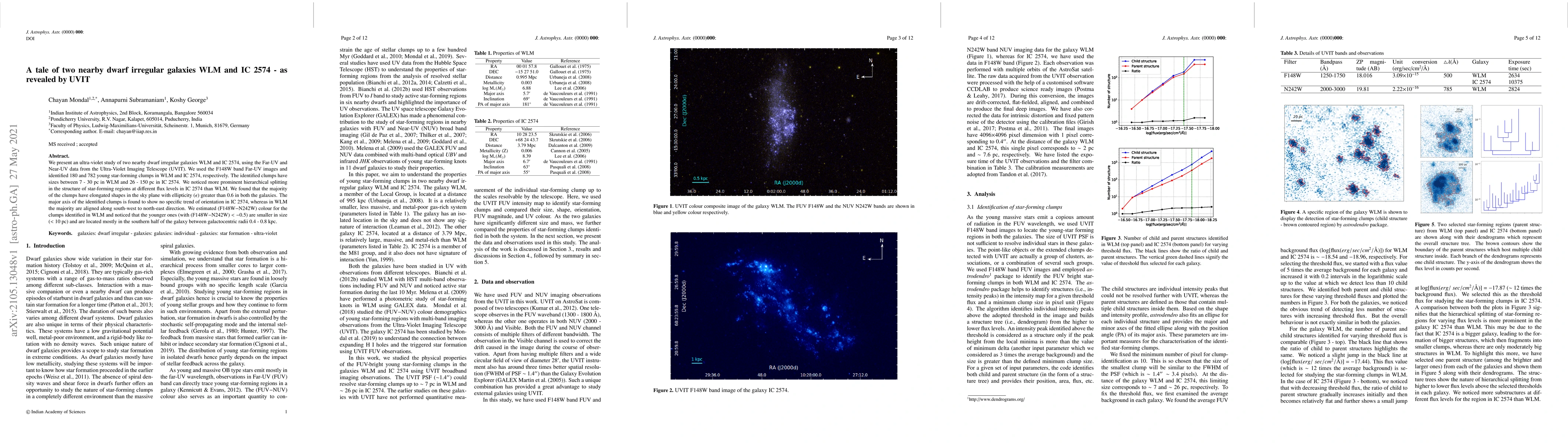 This study uses UVIT to analyze two nearby dwarf irregular galaxies, WLM and IC 2574, revealing young star-forming clumps with varying sizes and shapes, highlighting differences in their structures and orientations.