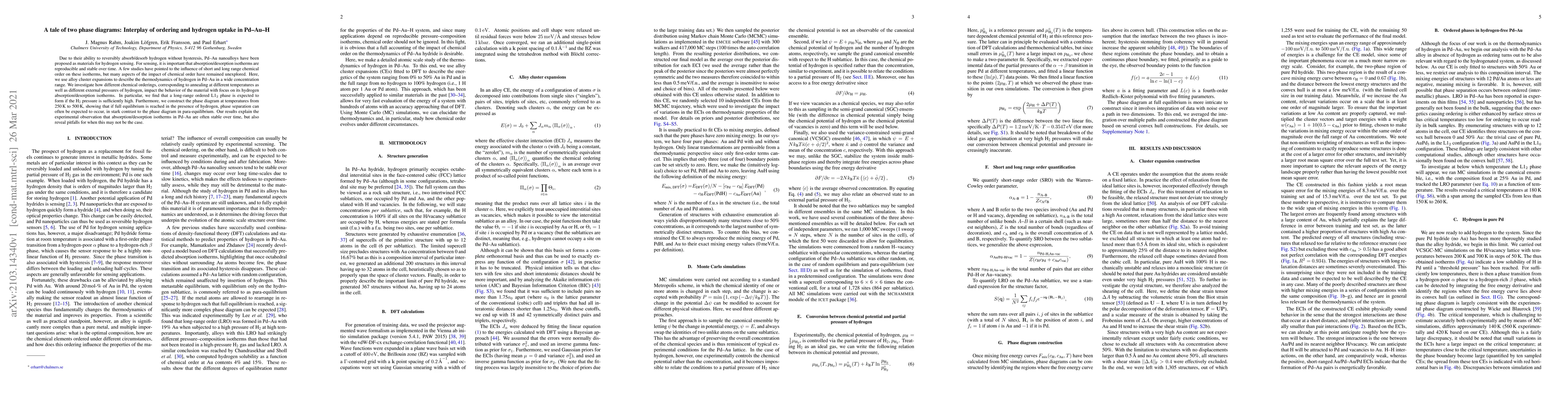 Due to their ability to reversibly absorb/desorb hydrogen without hysteresis, Pd--Au nanoalloys have been proposed as materials for hydrogen sensing. For sensing, it is important that absorption/desorption isotherms are reproducible and stable over time. A few studies have pointed to the influence of short and long range chemical order on these isotherms, but many aspects of the impact of chemical order have remained unexplored. Here, we use alloy cluster expansions to describe the thermodynamics of hydrogen in Pd--Au in a wide concentration range. We investigate how different chemical orderings, corresponding to annealing at different temperatures as well as different external pressures of hydrogen, impact the behavior of the material with focus on its hydrogen absorption/desorption isotherms. In particular, we find that a long-range ordered L1$_2$ phase is expected to form if the \ce{H2} pressure is sufficiently high. Furthermore, we construct the phase diagram at temperatures from \unit[250]{K} to \unit[500]{K}, showing that if full equilibrium is reached in the presence of hydrogen, phase separation can often be expected to occur, in stark contrast to the phase diagram in para-equilibrium. Our results explain the experimental observation that absorption/desorption isotherms in Pd--Au are often stable over time, but also reveal pitfalls for when this may not be the case.