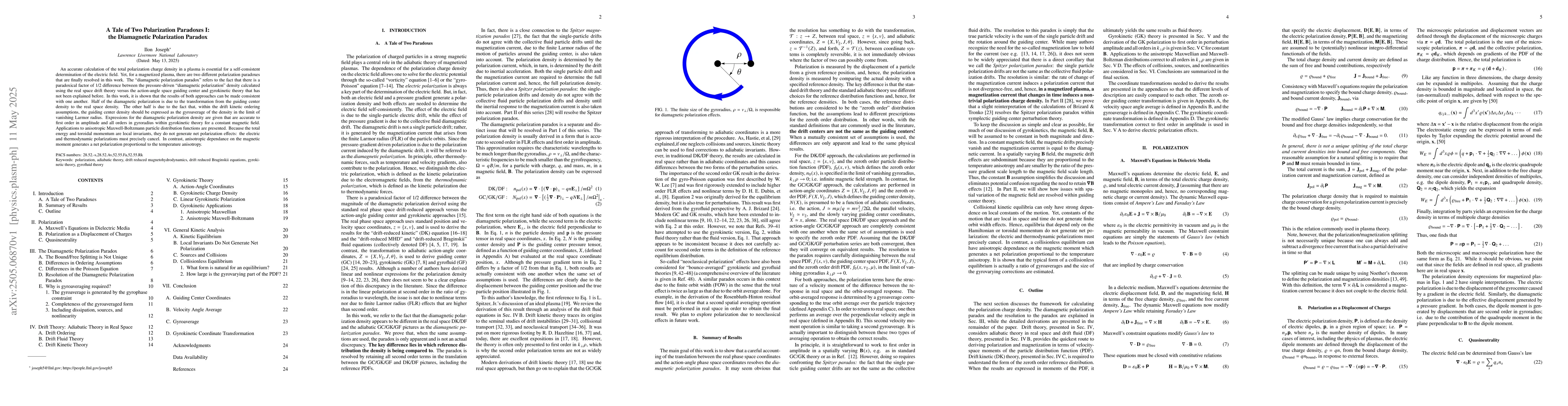 Researchers resolve two polarization paradoxes in magnetized plasmas using guiding center theory, finding that half of the diamagnetic polarization comes from density transformation and the other half from magnetic moment dependence on temperature.