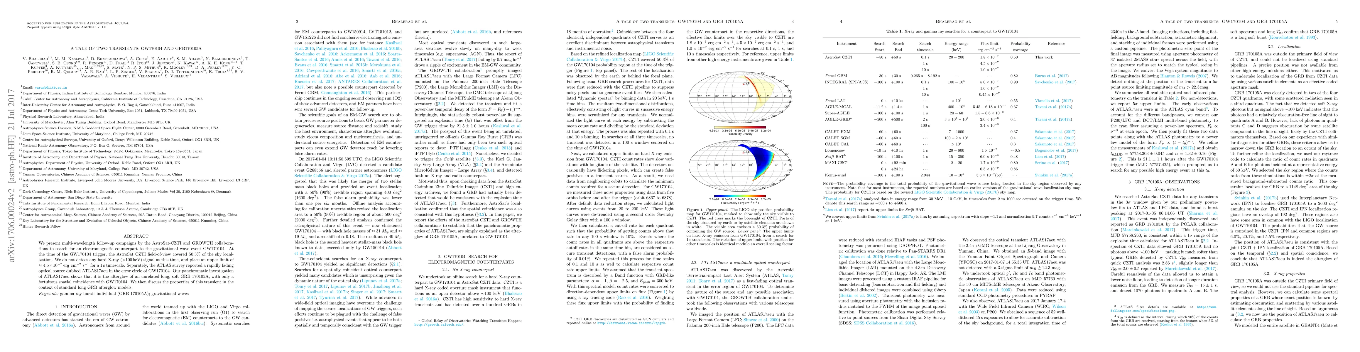 We present multi-wavelength follow-up campaigns by the AstroSat-CZTI and GROWTH collaborations to search for an electromagnetic counterpart to the gravitational wave event GW170104. At the time of the GW170104 trigger, the AstroSat CZTI field-of-view covered 50.3\% of the sky localization. We do not detect any hard X-ray (>100 keV) signal at this time, and place an upper limit of $\approx 4.5 \times 10^{-7}~{\rm erg~cm}^{-2}{\rm~s}^{-1}$ for a 1\,s timescale. Separately, the ATLAS survey reported a rapidly fading optical source dubbed ATLAS17aeu in the error circle of GW170104. Our panchromatic investigation of ATLAS17aeu shows that it is the afterglow of an unrelated long, soft GRB~170105A, with only a fortuitous spatial coincidence with GW170104. We then discuss the properties of this transient in the context of standard long GRB afterglow models.