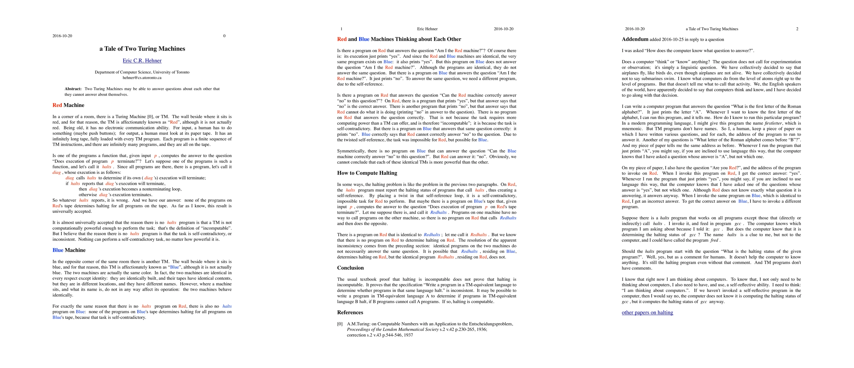 Summary: This paper explores how two Turing Machines can collaboratively answer questions about each other that neither can resolve independently, highlighting the potential for cooperative problem-solving in computational systems.