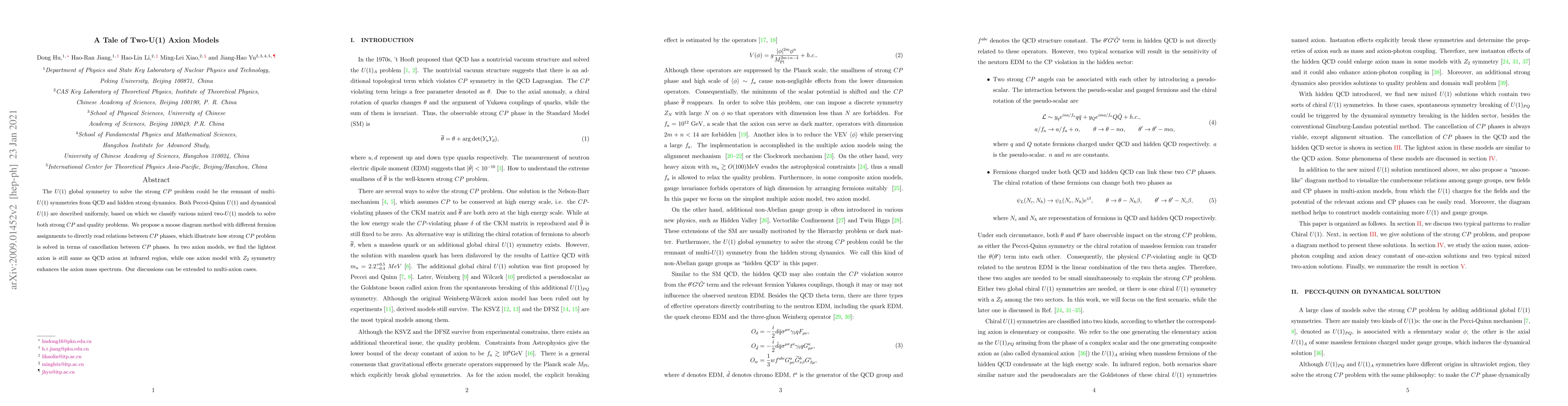 The $U(1)$ global symmetry to solve the strong $CP$ problem could be the remnant of multi-$U(1)$ symmetries from QCD and hidden strong dynamics. Both Peccei-Quinn $U(1)$ and dynamical $U(1)$ are described uniformly, based on which we classify various mixed two-$U(1)$ models to solve both strong $CP$ and quality problems. We propose a moose diagram method with different fermion assignments to directly read relations between $CP$ phases, which illustrate how strong $CP$ problem is solved in terms of cancellation between $CP$ phases. In two axion models, we find the lightest axion is still same as QCD axion at infrared region, while one axion model with $Z_2$ symmetry enhances the axion mass spectrum. Our discussions can be extended to multi-axion cases.