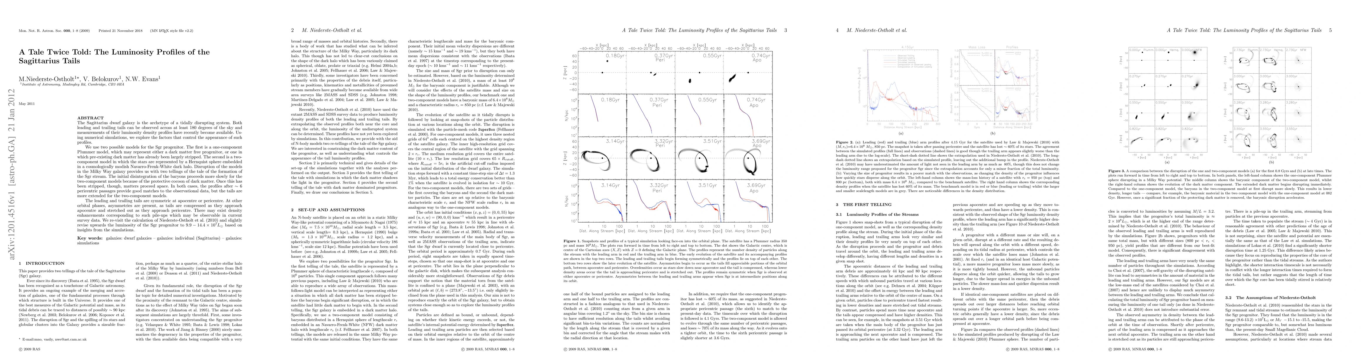This paper investigates the luminosity profiles of the Sagittarius dwarf galaxy's tidal tails using numerical simulations. It compares a one-component Plummer model to a two-component model with a dark matter halo, finding that while the latter's baryons disintegrate more slowly, the resulting tails are more extended and match observational data after ~6 pericentric passages.