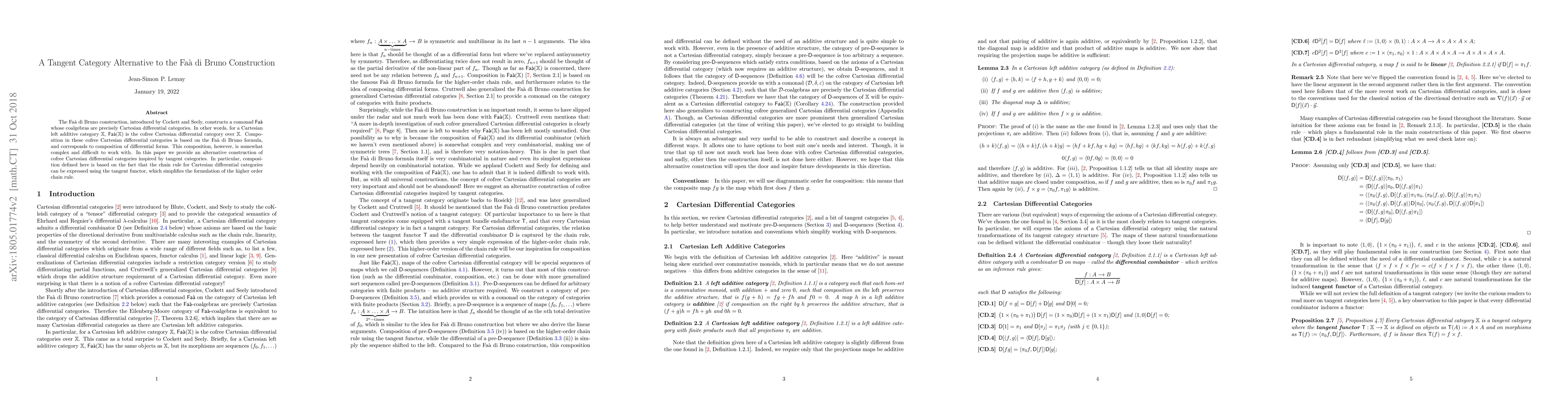 This paper proposes an alternative construction to the Faà di Bruno formula for Cartesian differential categories, using tangent categories to simplify the higher-order chain rule and provide a more manageable composition of differential forms. The new approach leverages the tangent functor to redefine composition in cofree Cartesian differential categories.