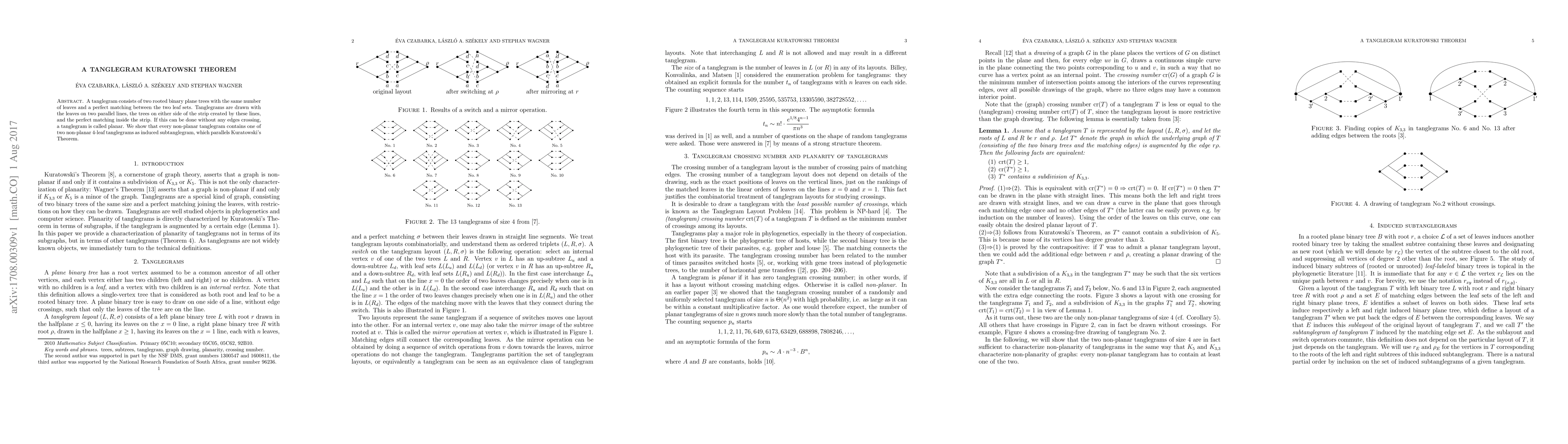 A tanglegram consists of two rooted binary plane trees with the same number of leaves and a perfect matching between the two leaf sets. Tanglegrams are drawn with the leaves on two parallel lines, the trees on either side of the strip created by these lines, and the perfect matching inside the strip. If this can be done without any edges crossing, a tanglegram is called planar. We show that every non-planar tanglegram contains one of two non-planar 4-leaf tanglegrams as induced subtanglegram, which parallels Kuratowski's Theorem.
