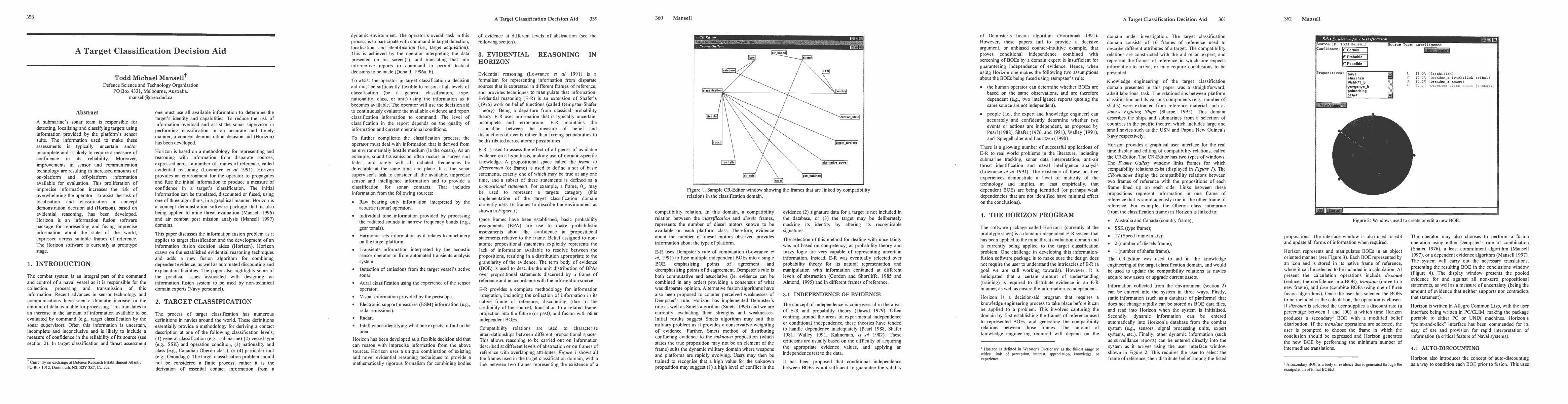 This paper introduces Horizon, a prototype decision aid for submarine sonar teams to detect, localize, and classify targets using evidential reasoning to manage the uncertainty and imprecision in sensor data. The software aims to fuse and represent large amounts of imprecise information to assist operators in their assessments.