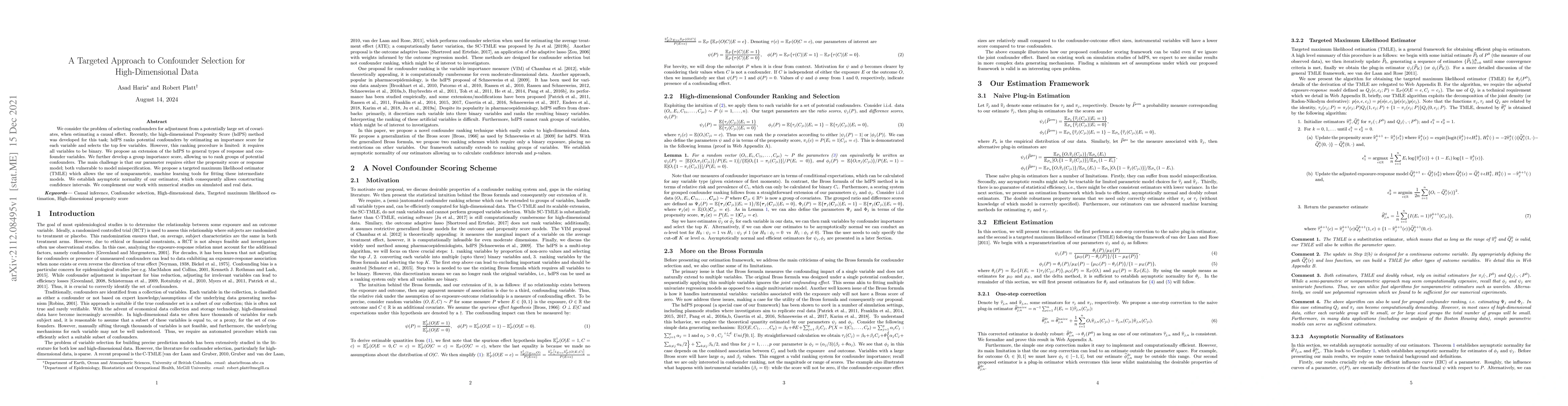 Researchers developed an extension of the Propensity Score method to select confounders for adjustment in high-dimensional data, improving handling of non-binary variables and group importance scores. The new approach uses a targeted maximum likelihood estimator to ensure accuracy despite model misspecification.