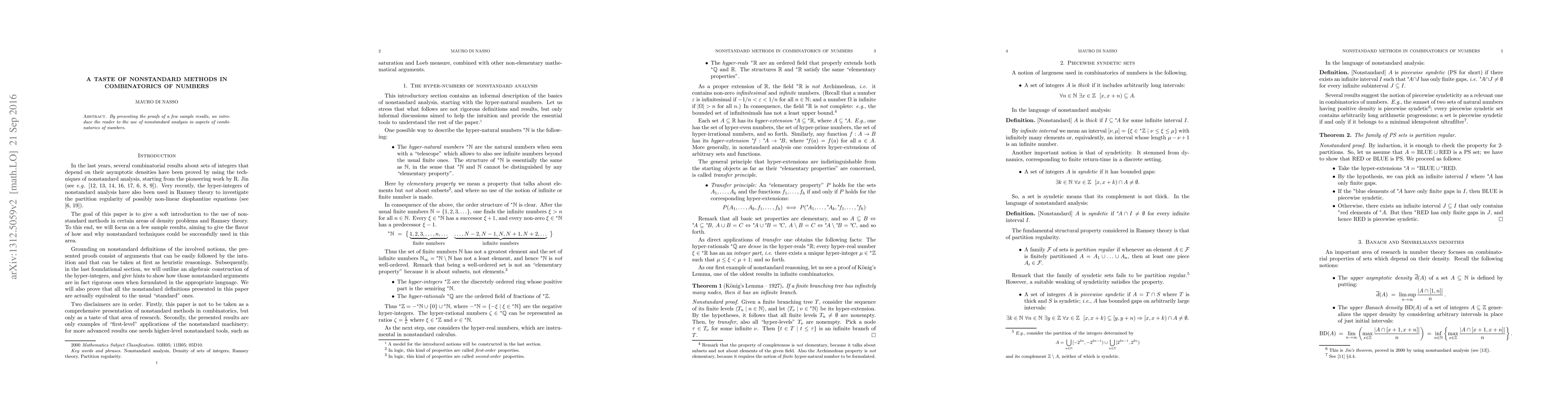 By presenting the proofs of a few sample results, we introduce the reader to the use of nonstandard analysis in aspects of combinatorics of numbers.