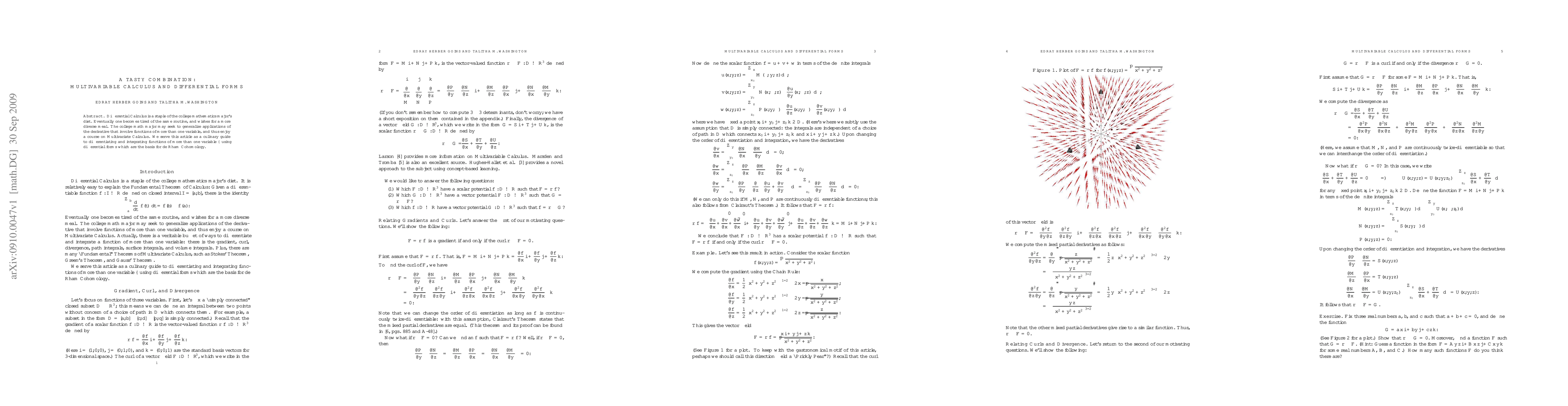 Differential Calculus is a staple of the college mathematics major's diet. Eventually one becomes tired of the same routine, and wishes for a more diverse meal. The college math major may seek to generalize applications of the derivative that involve functions of more than one variable, and thus enjoy a course on Multivariate Calculus. We serve this article as a culinary guide to differentiating and integrating functions of more than one variable -- using differential forms which are the basis for de Rham Cohomology.