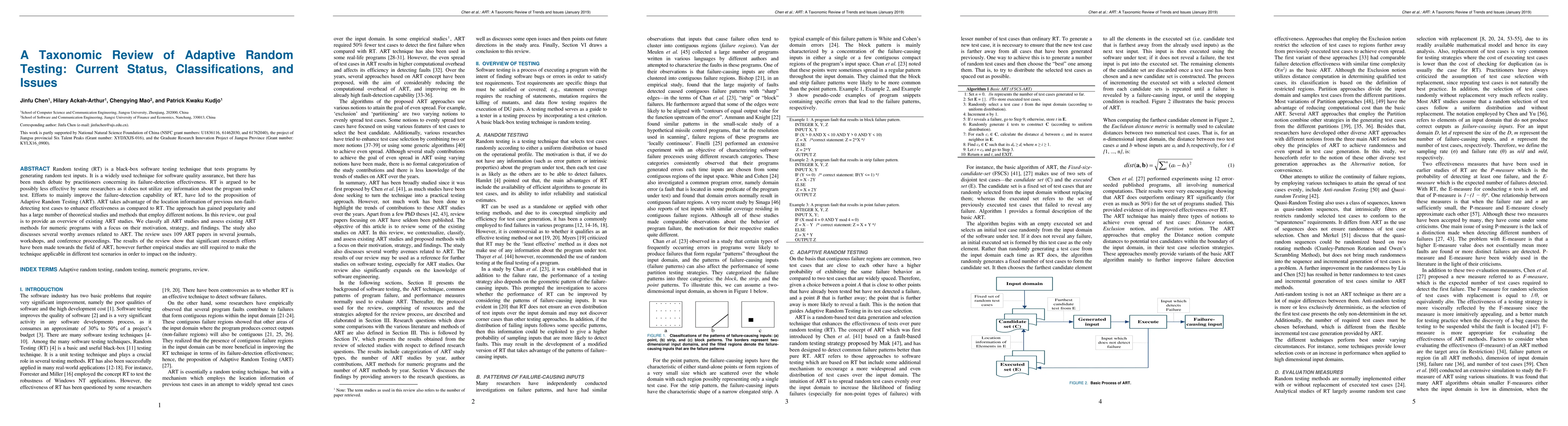Random testing (RT) is a black-box software testing technique that tests programs by generating random test inputs. It is a widely used technique for software quality assurance, but there has been much debate by practitioners concerning its failure-detection effectiveness. RT is argued to be possibly less effective by some researchers as it does not utilize any information about the program under test. Efforts to mainly improve the failure-detection capability of RT, have led to the proposition of Adaptive Random Testing (ART). ART takes advantage of the location information of previous non-fault-detecting test cases to enhance effectiveness as compared to RT. The approach has gained popularity and has a large number of theoretical studies and methods that employ different notions. In this review, our goal is to provide an overview of existing ART studies. We classify all ART studies and assess existing ART methods for numeric programs with a focus on their motivation, strategy, and findings. The study also discusses several worthy avenues related to ART. The review uses 109 ART papers in several journals, workshops, and conference proceedings. The results of the review show that significant research efforts have been made towards the field of ART, however further empirical studies are still required to make the technique applicable in different test scenarios in order to impact on the industry.