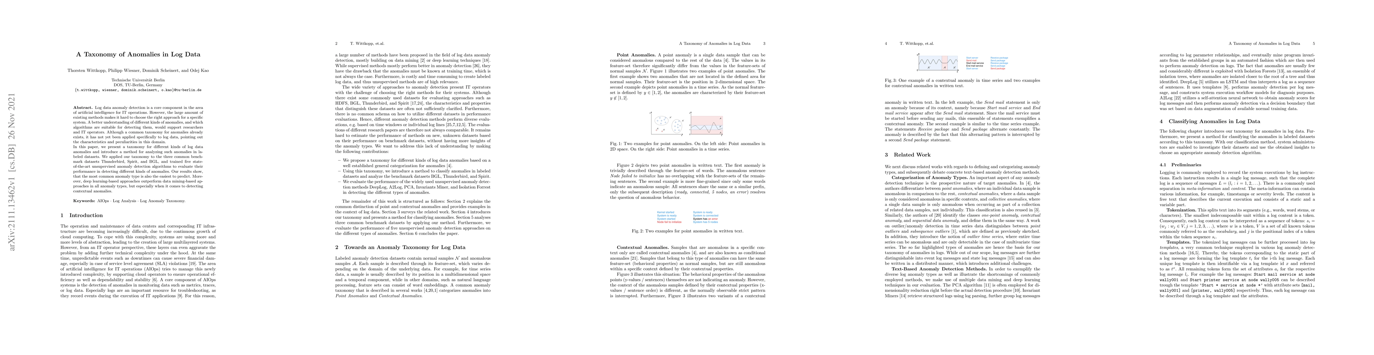 A new taxonomy for log data anomalies has been proposed to help researchers and IT operators choose the right approach for anomaly detection in specific systems. Deep learning-based approaches outperform traditional methods in detecting contextual anomalies.