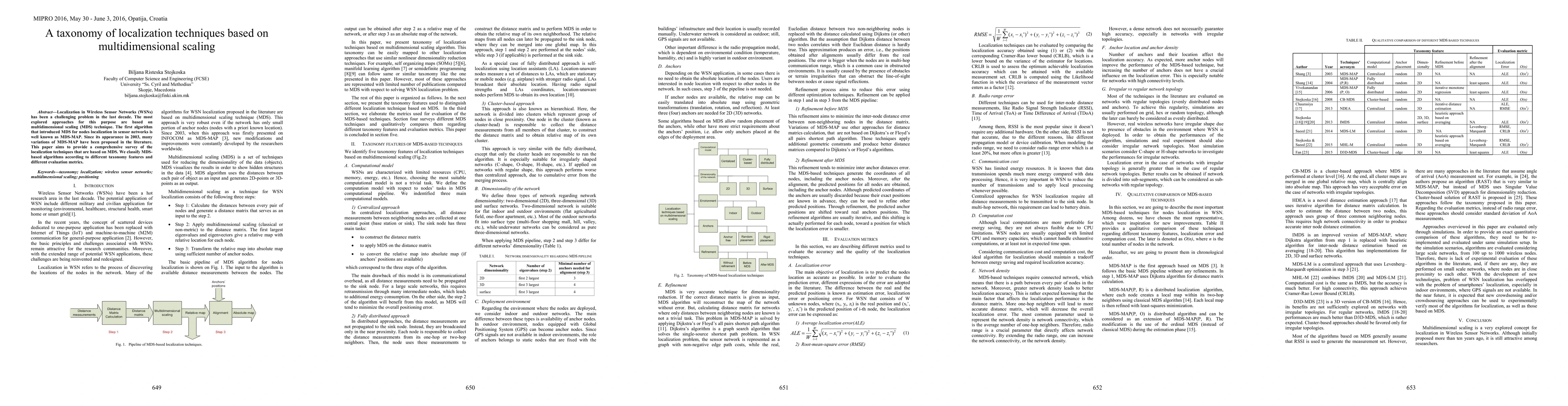 This paper surveys localization techniques in Wireless Sensor Networks (WSNs) based on multidimensional scaling (MDS), categorizing various MDS-based algorithms and evaluating them according to multiple taxonomy features and metrics.
