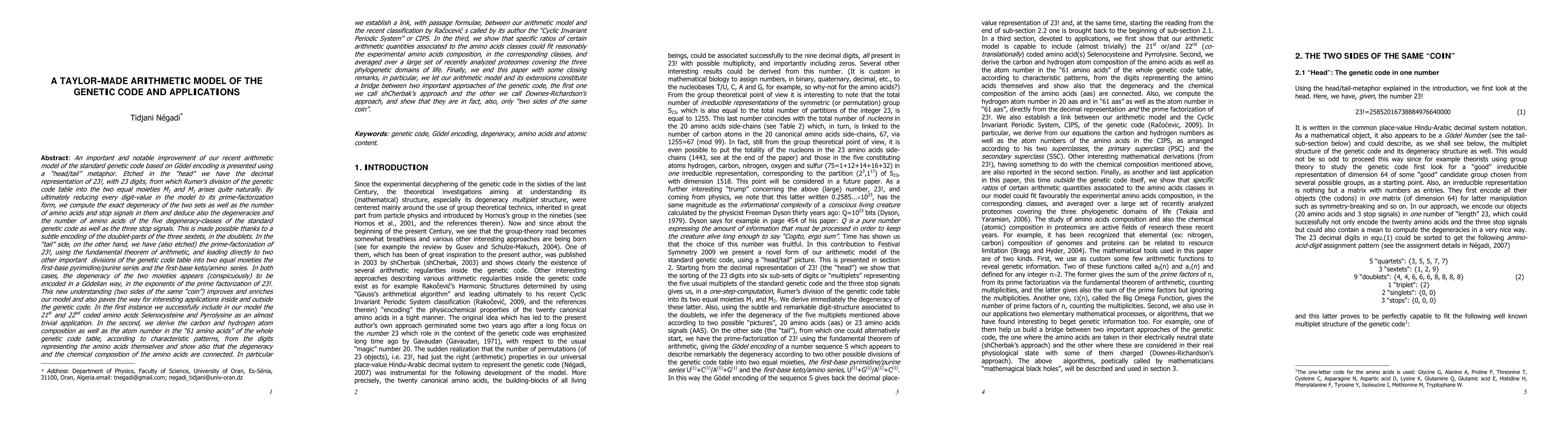 We present a completely new version of our arithmetic model of the standard genetic code and compute in a straightforward manner the exact numeric degeneracies of the five multiplets without any trick for the doublets and the sextets, as we have done previously. We give also some interesting applications.